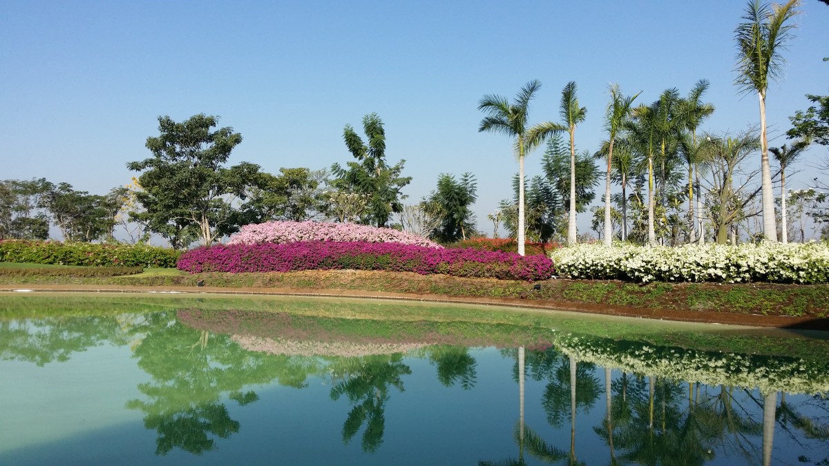 JDM bamboo lake w flowers Published 24/12/2017 at 4128 × 2322 in TOURIST ATTRACTIONS IN THE STATE OF MORELOS, MEXICO ← Previous Next → This is a partial view of the lake and the special-events garden as seen from Bamboo, special events pavilion. Multi-colored bougainvillea and date palms predominate. Jardines de México.