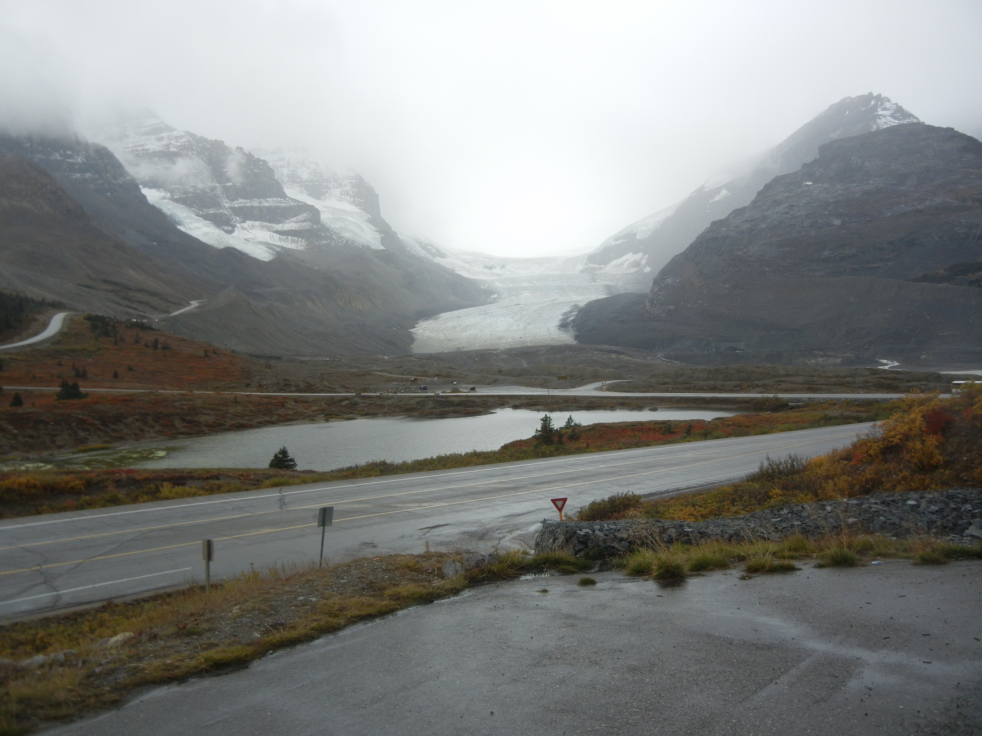 The Athabasca Glacier seen from across the highway at the Icefields Cen