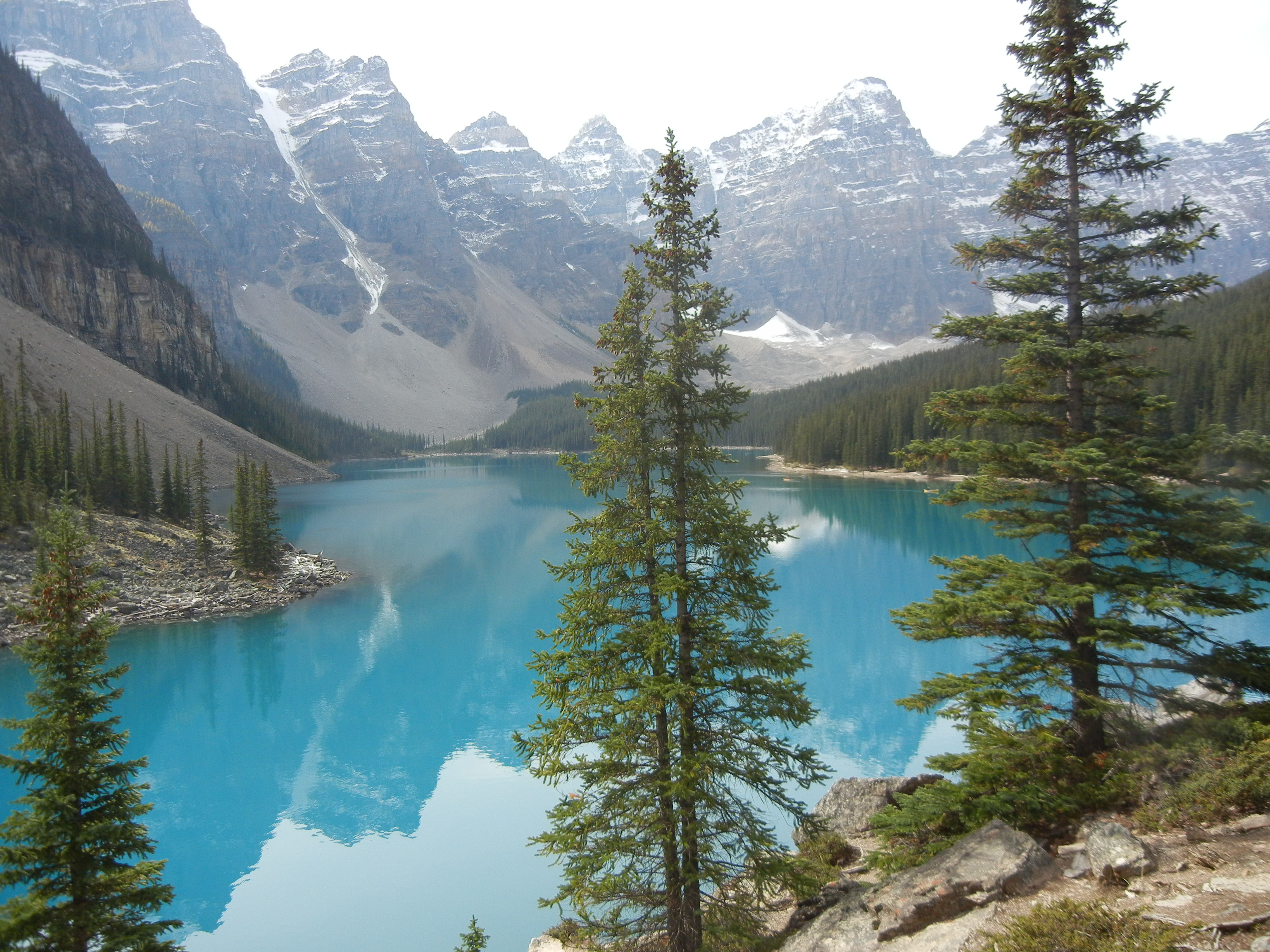 A closer view of Lake Moraine. The reflections are stunning on a sunny day.