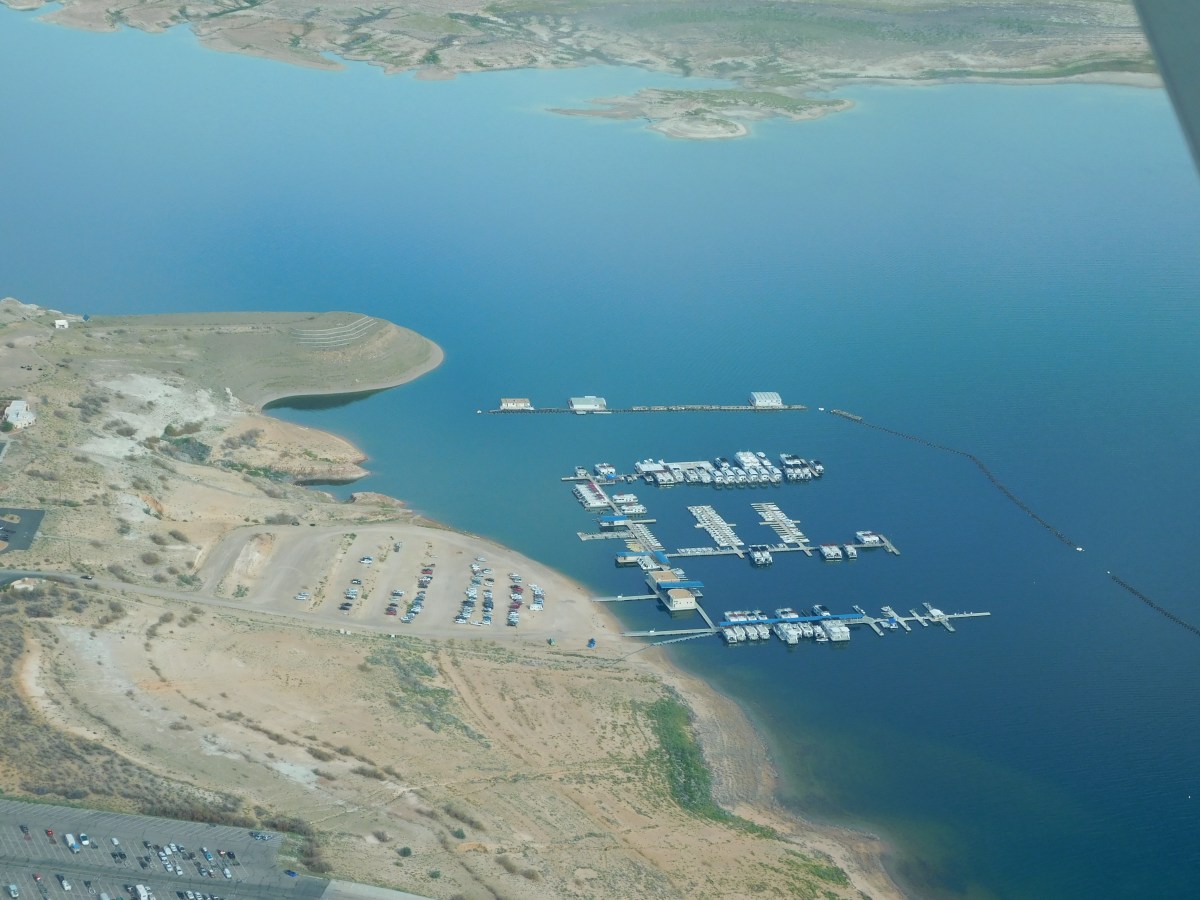 Flight over L Powell 004 Published 15/09/2015 at 4608 × 3456 in AMERICA’S CANYONLANDS, A TAUCK TOUR, AUGUST 31-SEPTEMBER 7, 2015 ← Previous Next → The lake stretches for 186 miles from Arizona into Utah. If you don’t gas up at this marina, the next one is 90 miles away.