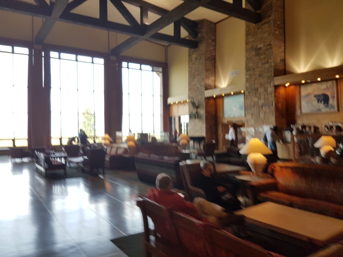 20170829_104448 Published 08/09/2017 at 4032 × 3024 in A TAUCK TOUR OF YELLOWSTONE & THE GRAND TETONS, August 22-30, 2017 ← Previous Next → The upper lobby of the Lodge looks out on the lake and the Tetons.