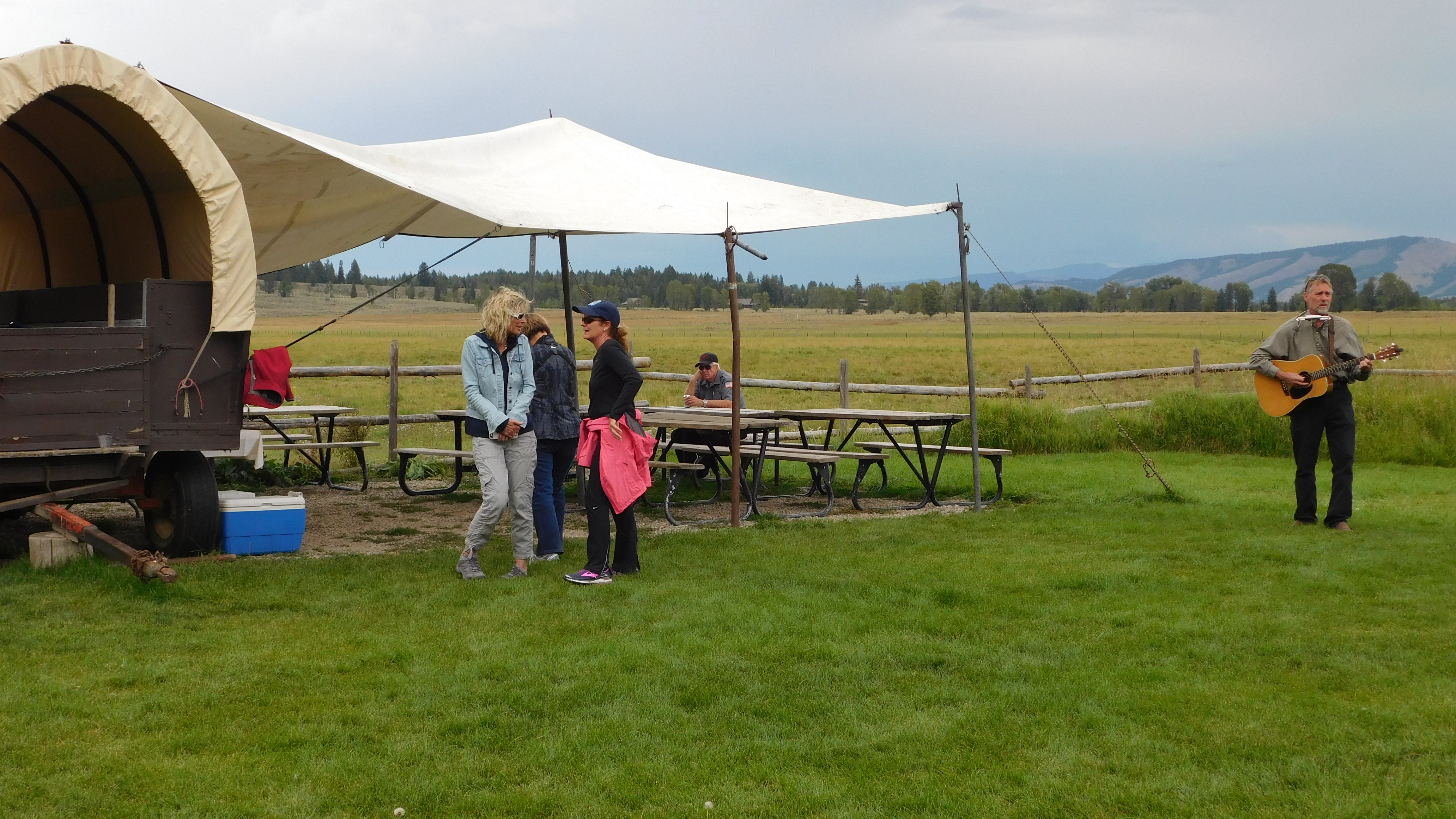 DSCN0672 Published 06/09/2017 at 4608 × 2592 in A TAUCK TOUR OF YELLOWSTONE & THE GRAND TETONS, August 22-30, 2017 ← Previous Next → A pleasant end to the visit with beverages and canapes and a serenade of western songs.