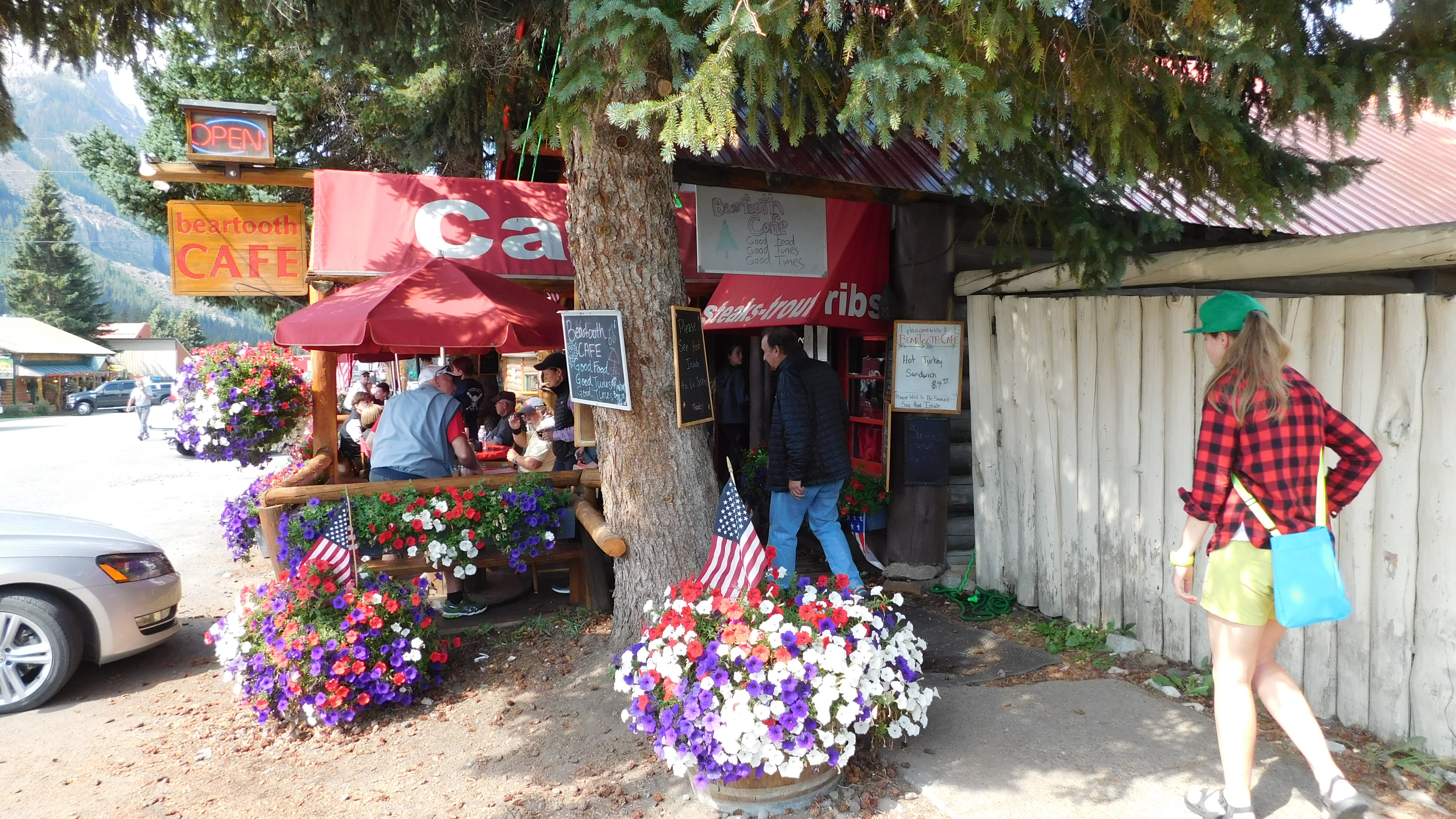 DSCN0730 Published 06/09/2017 at 4608 × 2592 in A TAUCK TOUR OF YELLOWSTONE & THE GRAND TETONS, August 22-30, 2017 ← Previous Next → The Beartooth Cafe with pleasant outdoor tables in Cook City MT.