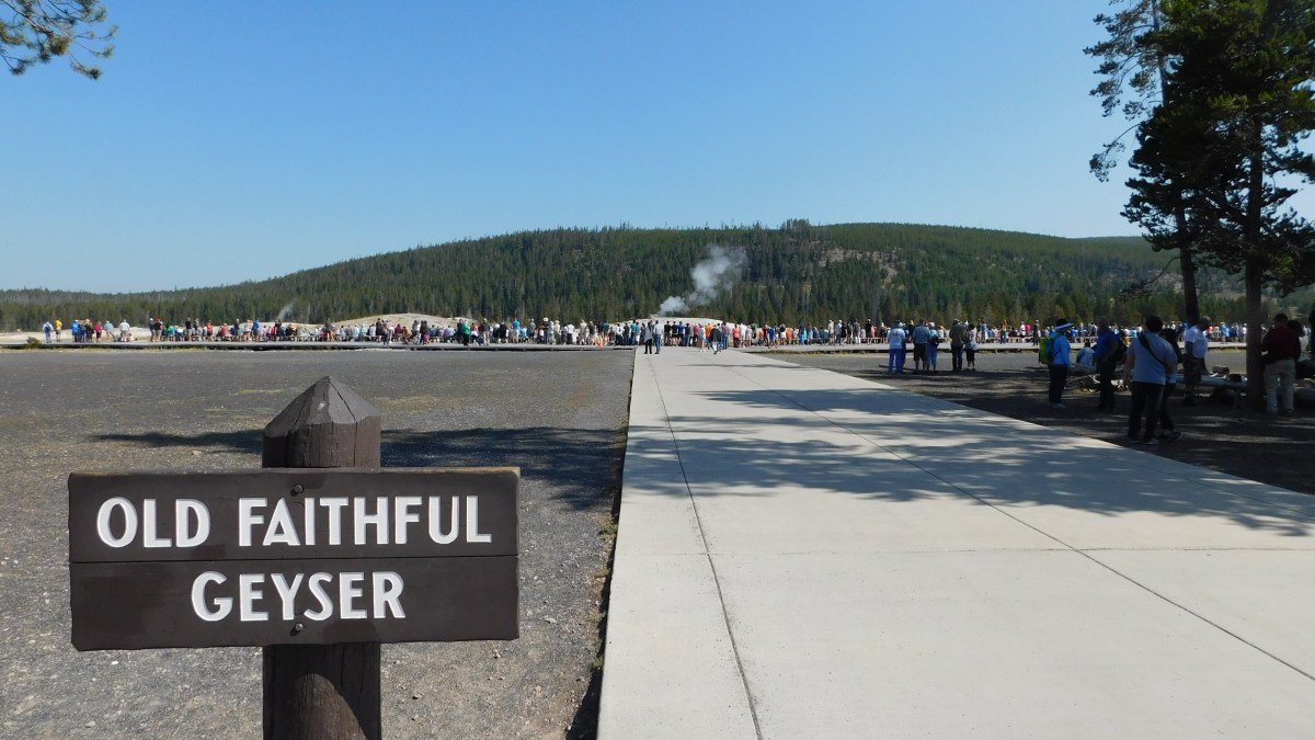 DSCN0800 Published 07/09/2017 at 4608 × 2592 in A TAUCK TOUR OF YELLOWSTONE & THE GRAND TETONS, August 22-30, 2017 ← Previous Next → Of course the most famous geyser, Old Faithful, drew the largest crowds and lengthy applause.