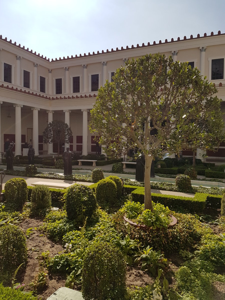 20171110_132216 Published 17/11/2017 at 3024 × 4032 in LOS ANGELES: A CULTURAL & CULINARY WEEKEND, Nov. 8-12, 2017 ← Previous Next → The peristyle garden features plants and herbs known to Roman households.
