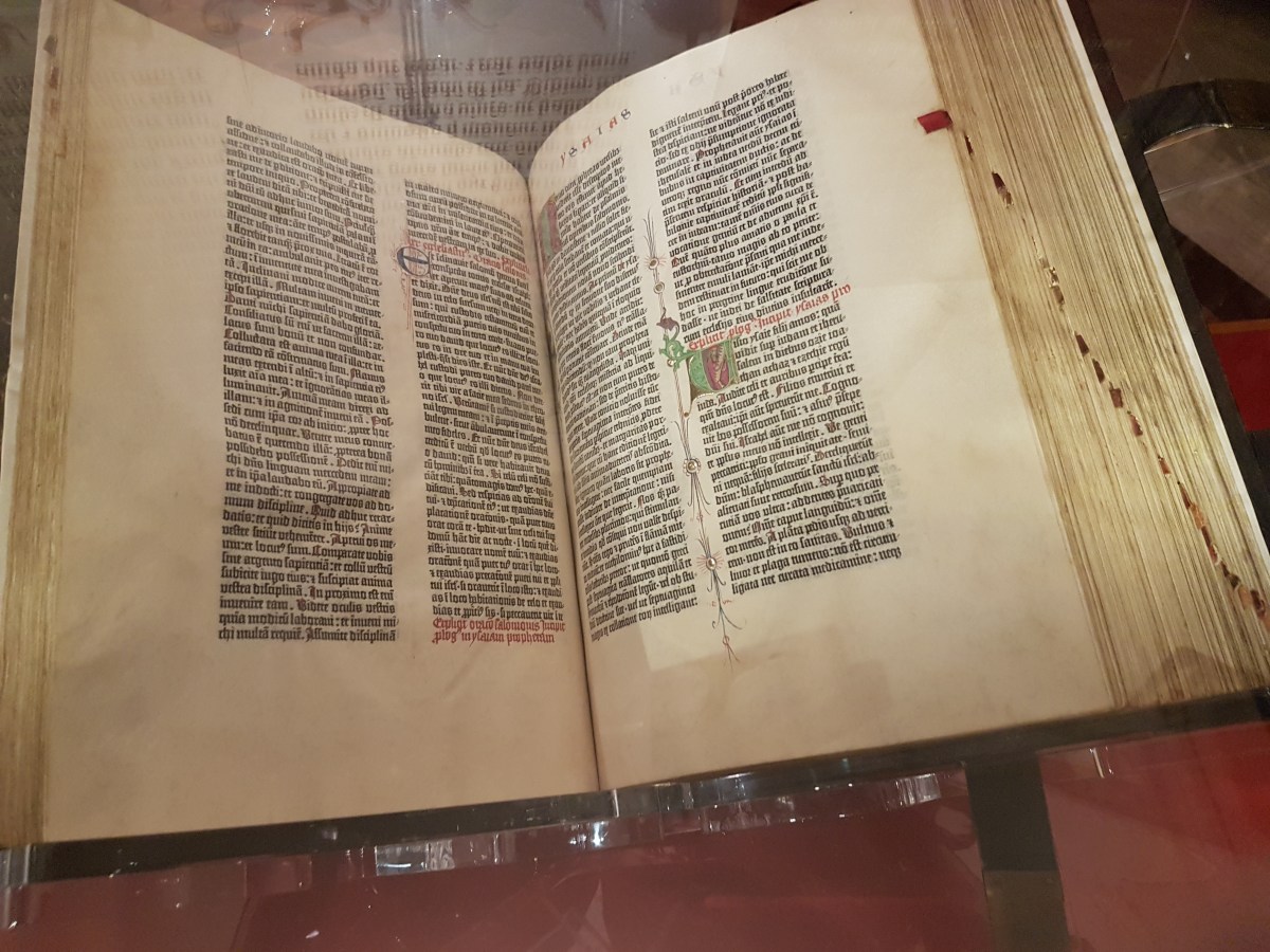 20171111_130347 Published 17/11/2017 at 4032 × 3024 in LOS ANGELES: A CULTURAL & CULINARY WEEKEND, Nov. 8-12, 2017 ← Previous Next → An original vellum edition of the Gutenberg Bible.