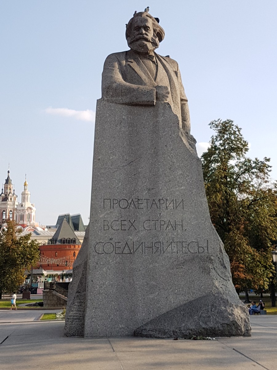 20180907_082809 Published 29/09/2018 at 3024 × 4032 in RUSSIA BY LAND, NOT BY SEA. Seven Days in Moscow & Saint Petersburg, Sept. 7-14, 2018 ← Previous Next → Karl Marx in Revolution Square.
