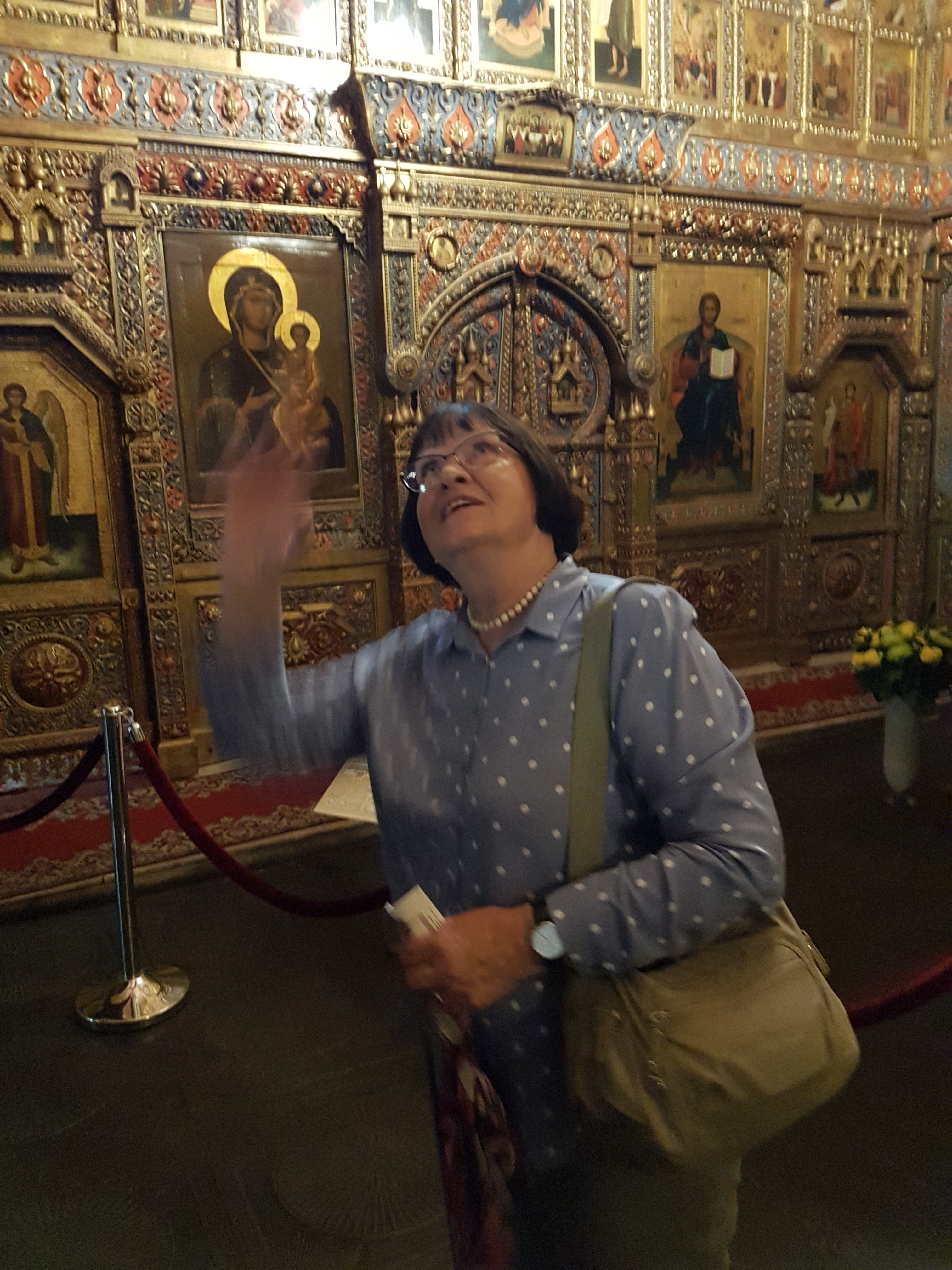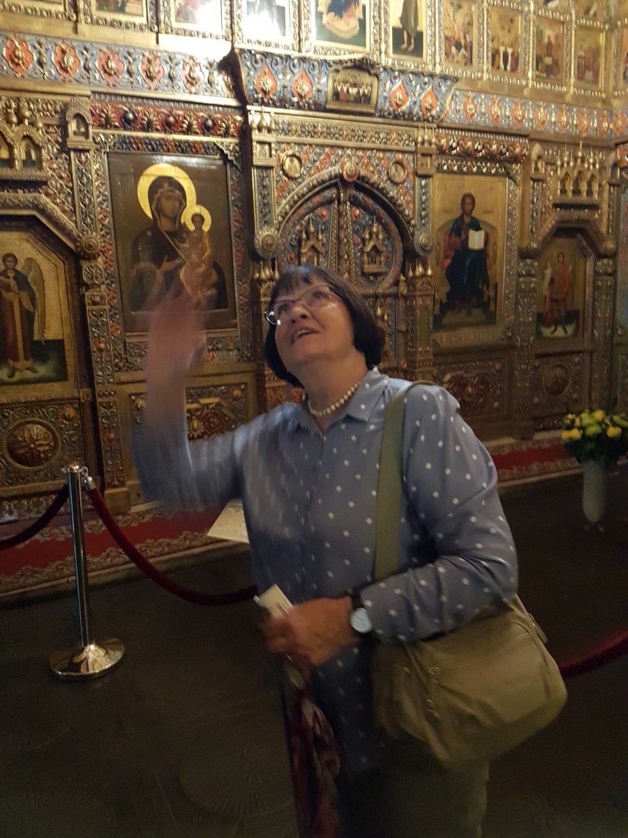 20180908_032320 Published 29/09/2018 at 3024 × 4032 in RUSSIA BY LAND, NOT BY SEA. Seven Days in Moscow & Saint Petersburg, Sept. 7-14, 2018 ← Previous Next → Our Moscow City guide Lyuba in St. Basil’s.