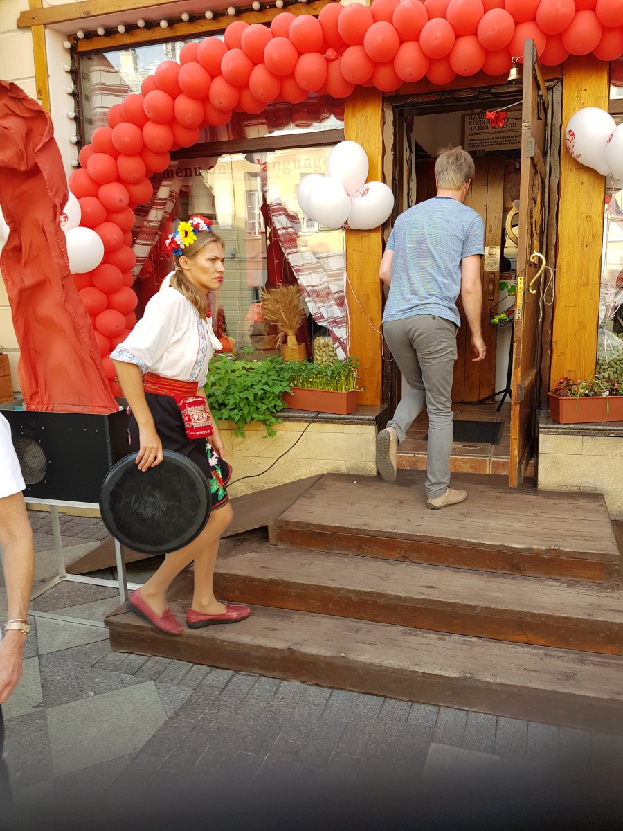 20180908_075652 Published 29/09/2018 at 3024 × 4032 in RUSSIA BY LAND, NOT BY SEA. Seven Days in Moscow & Saint Petersburg, Sept. 7-14, 2018 ← Previous Next → Our lunch stop, aKorchma (Ukranian café) named after a Nickolai Gogol novel, Taras Bulba.