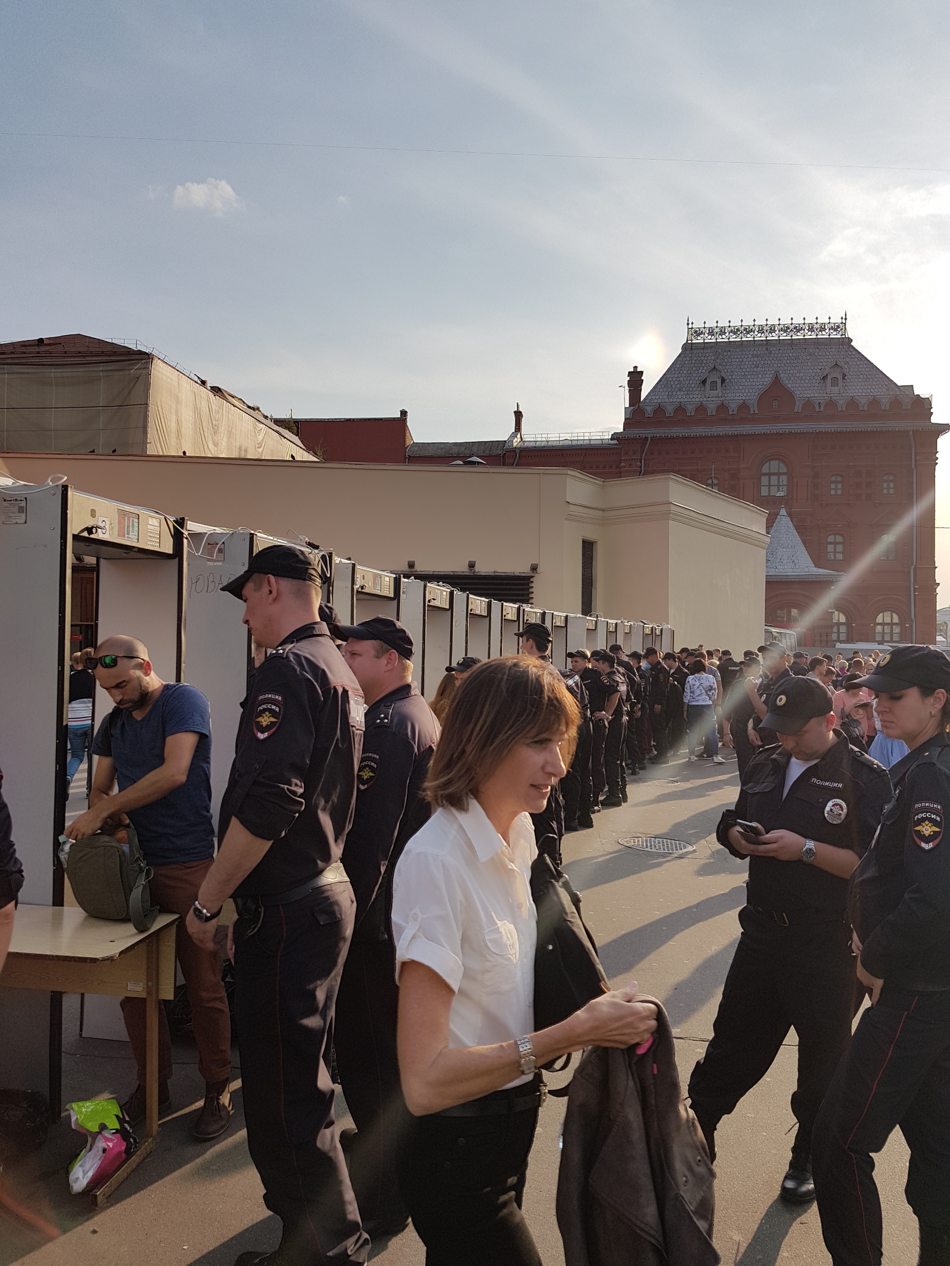 20180908_085943 Published 29/09/2018 at 3024 × 4032 in RUSSIA BY LAND, NOT BY SEA. Seven Days in Moscow & Saint Petersburg, Sept. 7-14, 2018 ← Previous Next → More than a dozen scanners checked visitors entering Revolution Square during the anniversary celebrations.