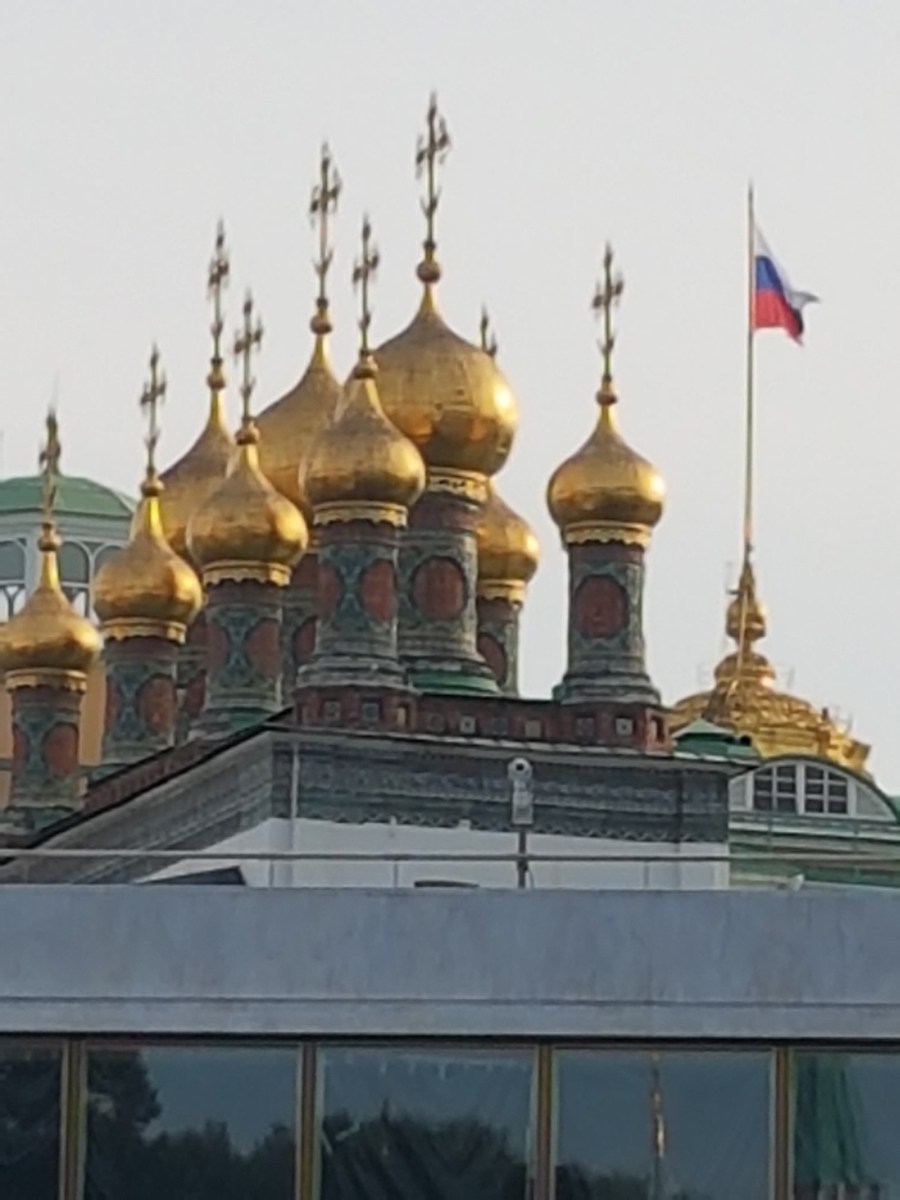 20180909_082308 Published 29/09/2018 at 3024 × 4032 in RUSSIA BY LAND, NOT BY SEA. Seven Days in Moscow & Saint Petersburg, Sept. 7-14, 2018 ← Previous Next → Onion-domes of the Cathedral of the Assumption.