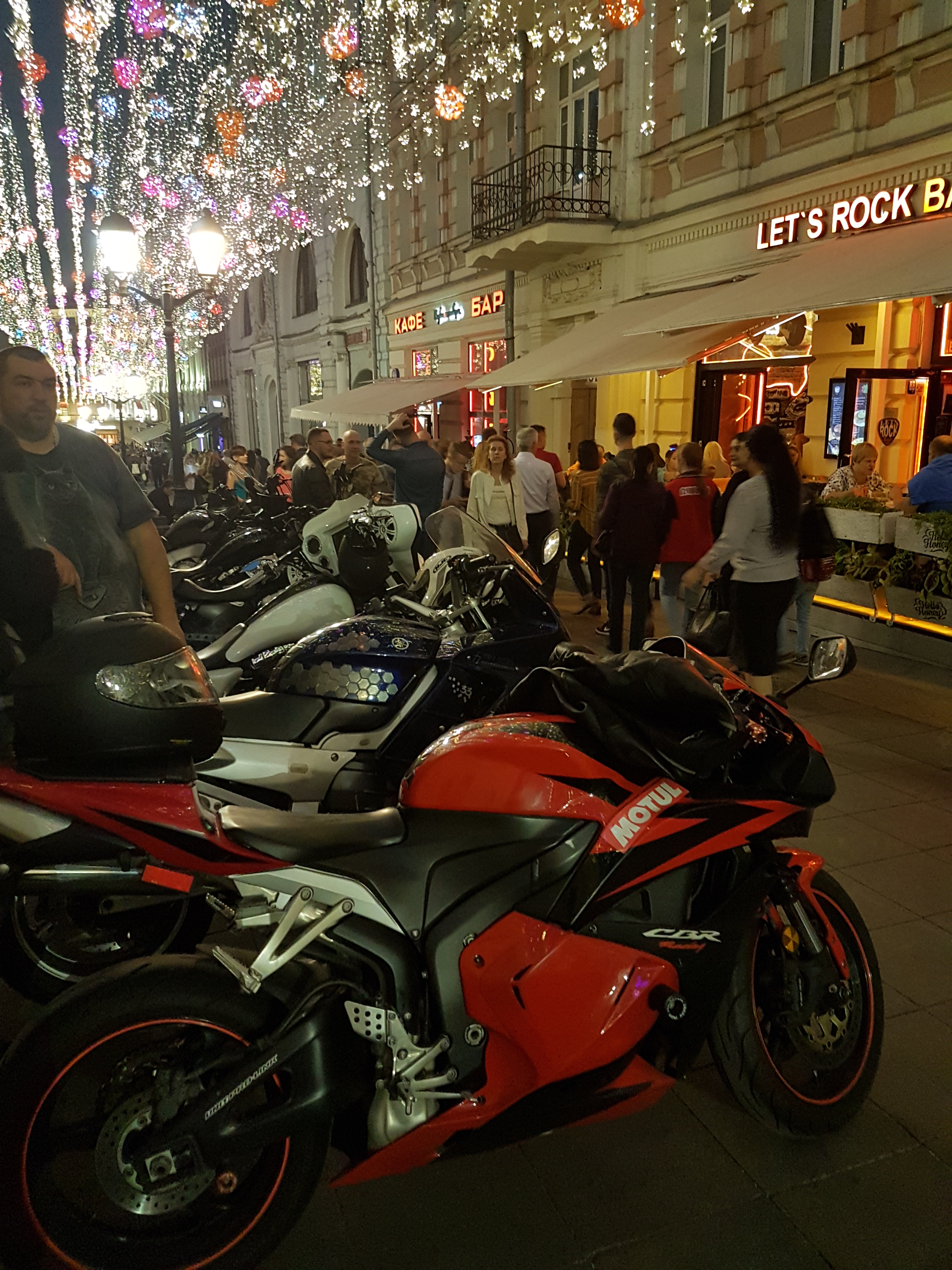 20180909_114131 Published 29/09/2018 at 3024 × 4032 in RUSSIA BY LAND, NOT BY SEA. Seven Days in Moscow & Saint Petersburg, Sept. 7-14, 2018 ← Previous Next → Bikers joined in the fun at evening hangouts.