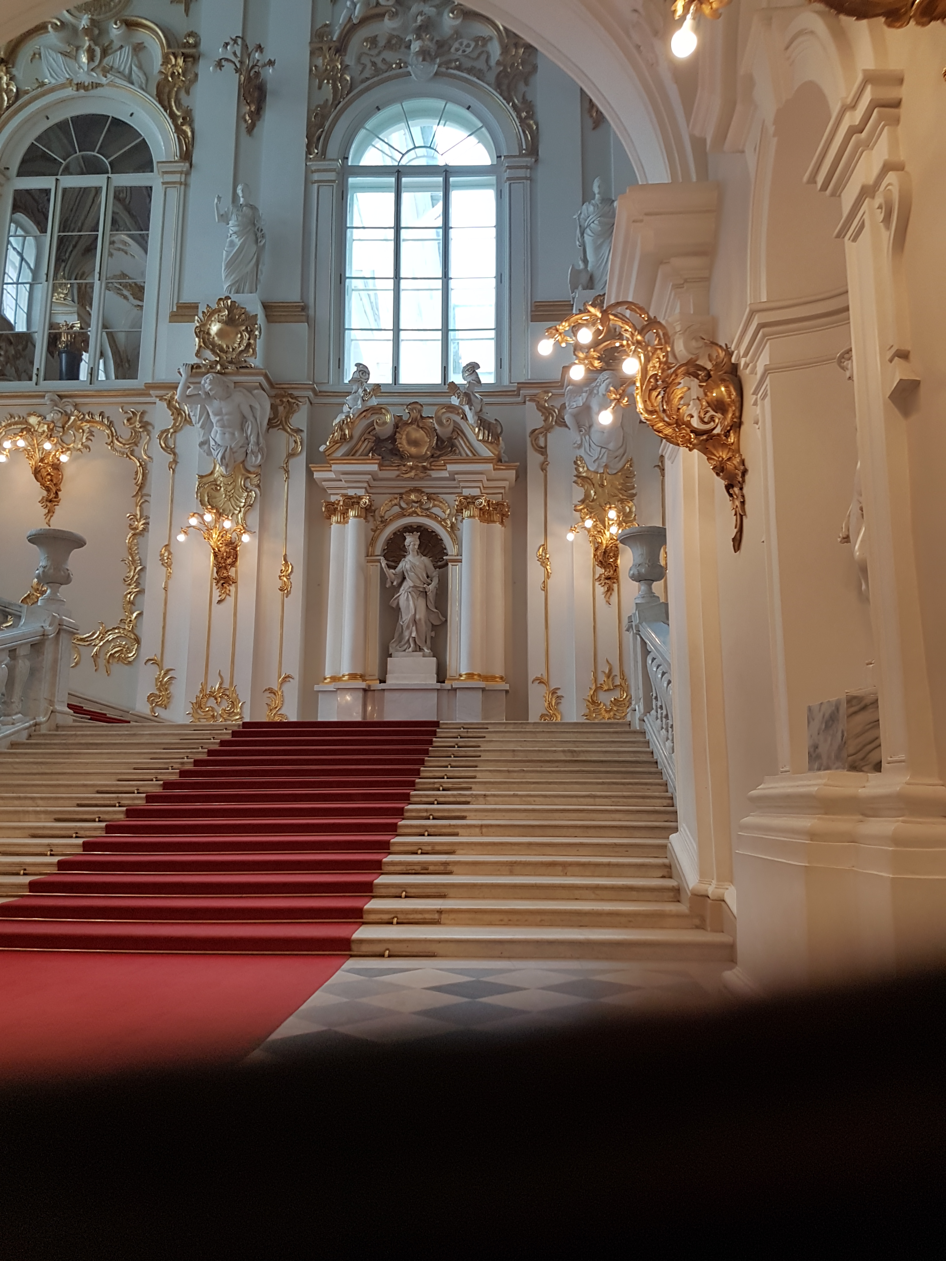 20180911_020728 Published 29/09/2018 at 3024 × 4032 in RUSSIA BY LAND, NOT BY SEA. Seven Days in Moscow & Saint Petersburg, Sept. 7-14, 2018 ← Previous Next → The grand stairway entrance to the Hermitage.