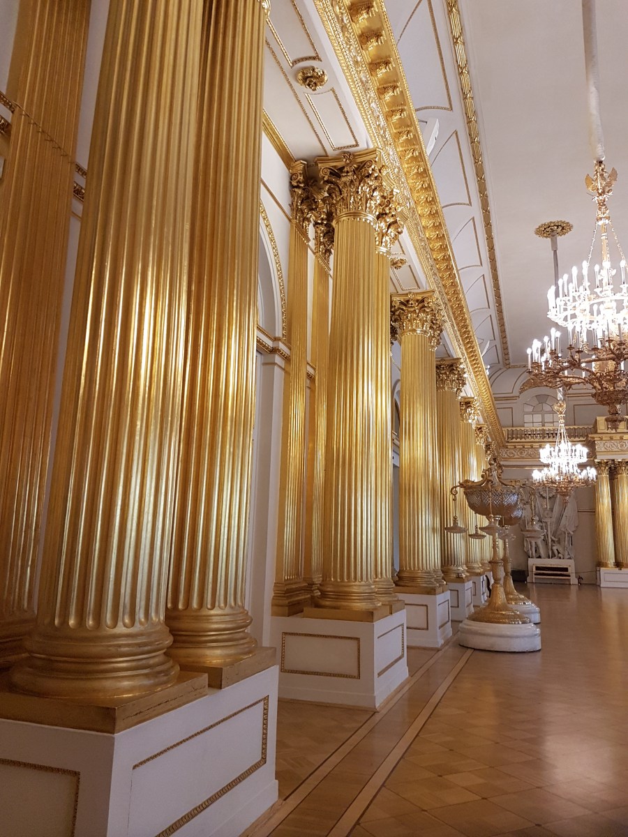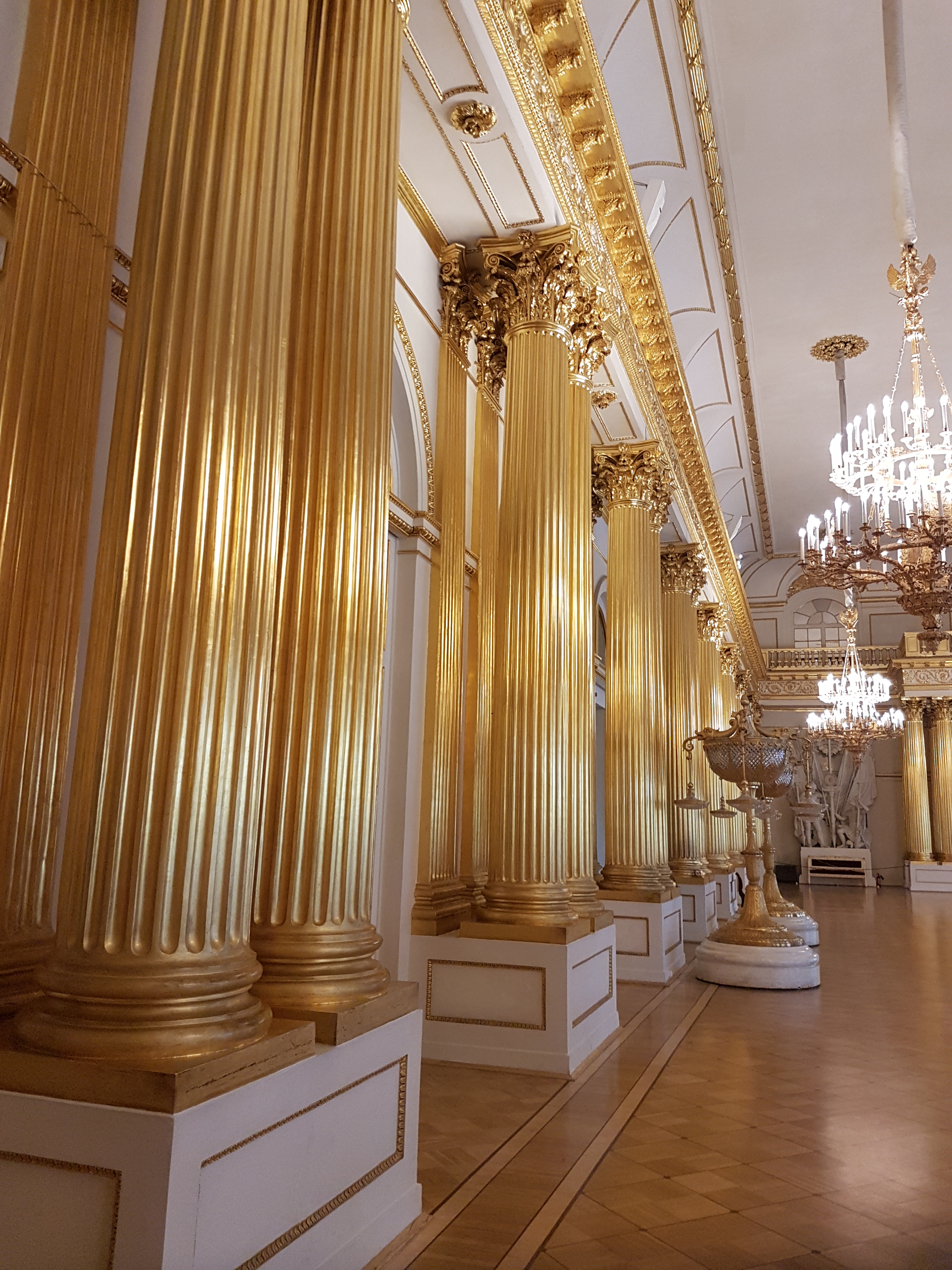 20180911_022053 Published 29/09/2018 at 3024 × 4032 in RUSSIA BY LAND, NOT BY SEA. Seven Days in Moscow & Saint Petersburg, Sept. 7-14, 2018 ← Previous Next → Gold-leafed columns brighte a reception hall in the Hermitage.