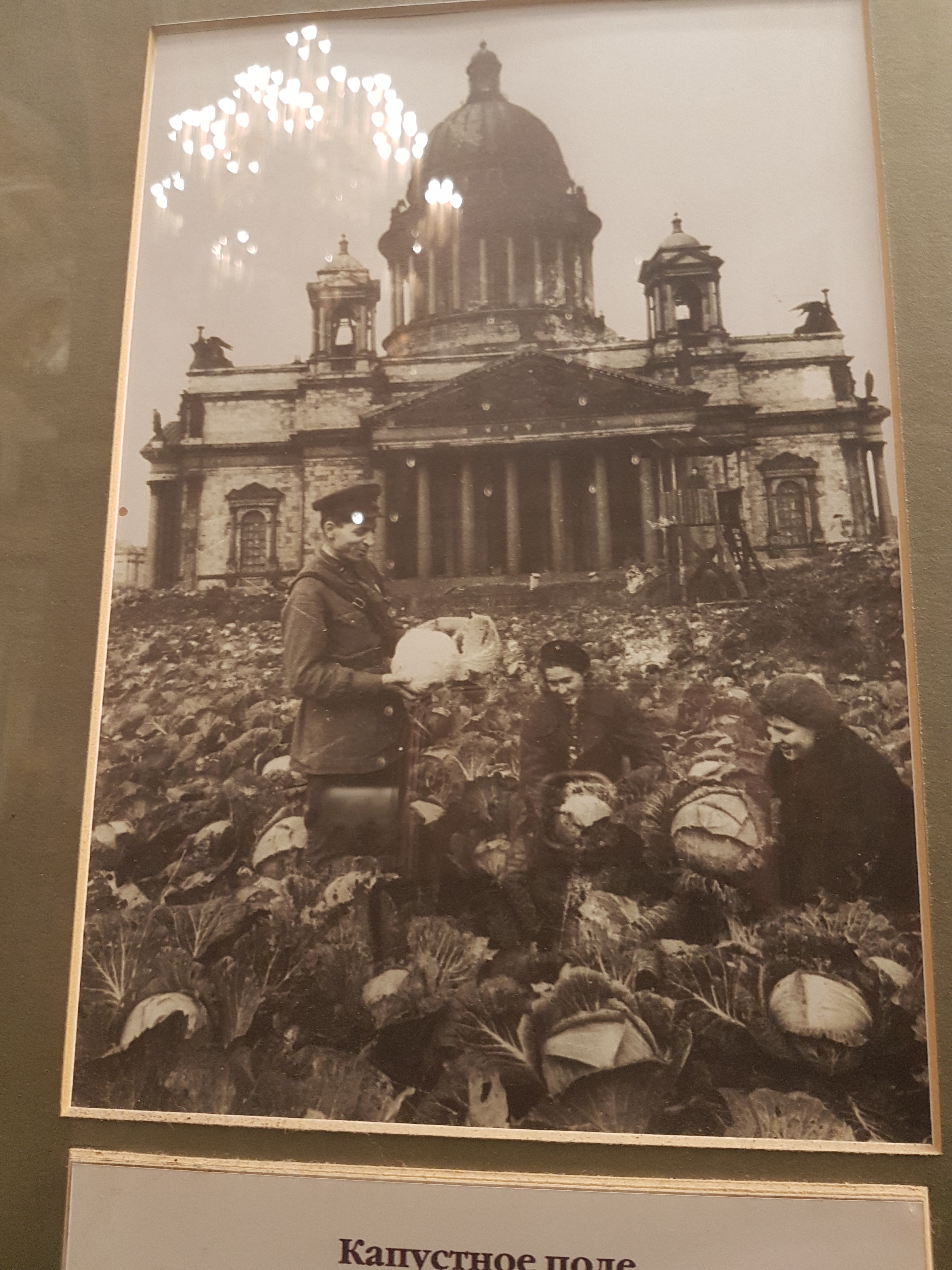20180911_080740 Published 29/09/2018 at 3024 × 4032 in RUSSIA BY LAND, NOT BY SEA. Seven Days in Moscow & Saint Petersburg, Sept. 7-14, 2018 ← Previous Next → The photo in the church shows starving Russians harvesting cabbage in the cathedral square during WWII.