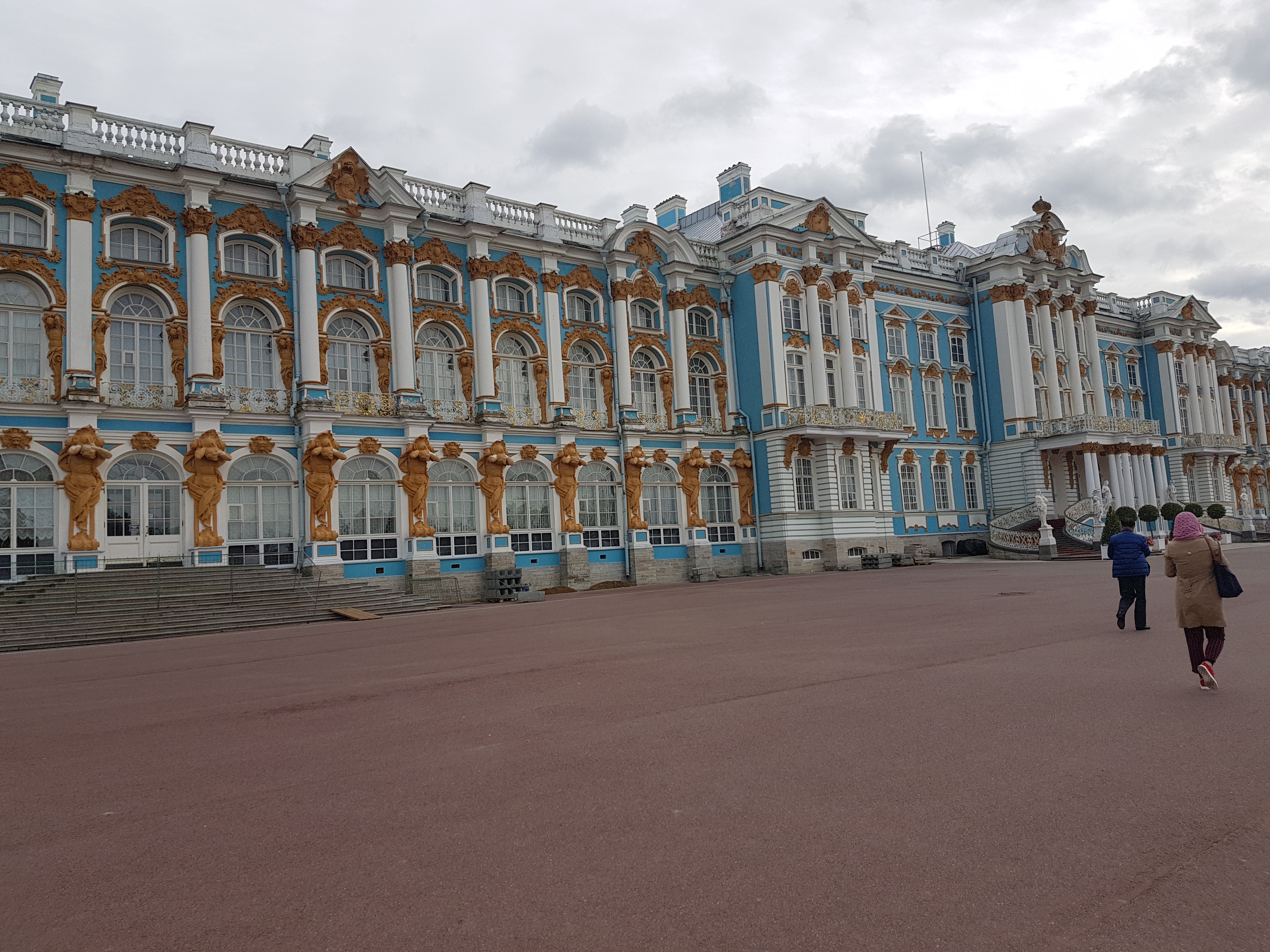 20180912_065627 Published 29/09/2018 at 4032 × 3024 in RUSSIA BY LAND, NOT BY SEA. Seven Days in Moscow & Saint Petersburg, Sept. 7-14, 2018 ← Previous Next → The facade of the Catherine Palace.