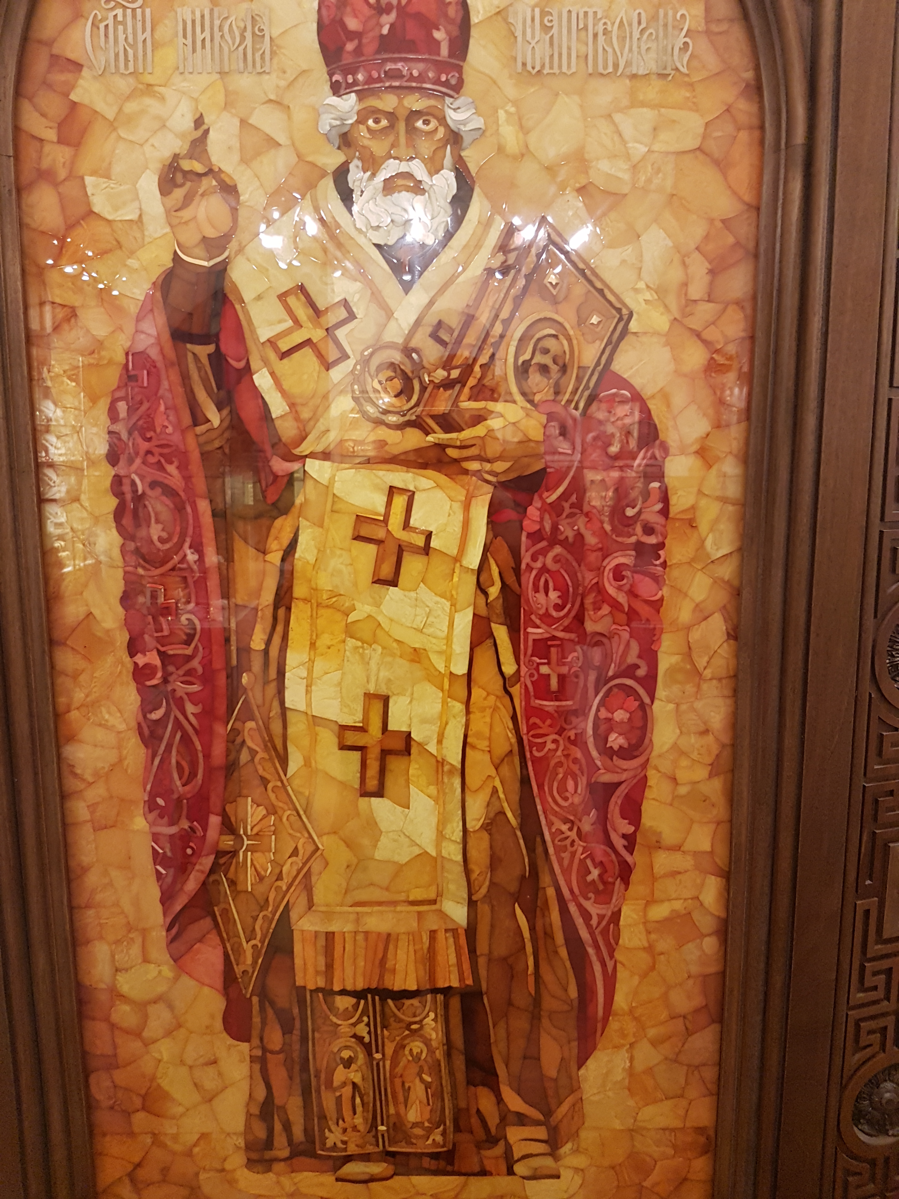 20180912_090611 Published 29/09/2018 at 3024 × 4032 in RUSSIA BY LAND, NOT BY SEA. Seven Days in Moscow & Saint Petersburg, Sept. 7-14, 2018 ← Previous Next → An amber-decorated icon.