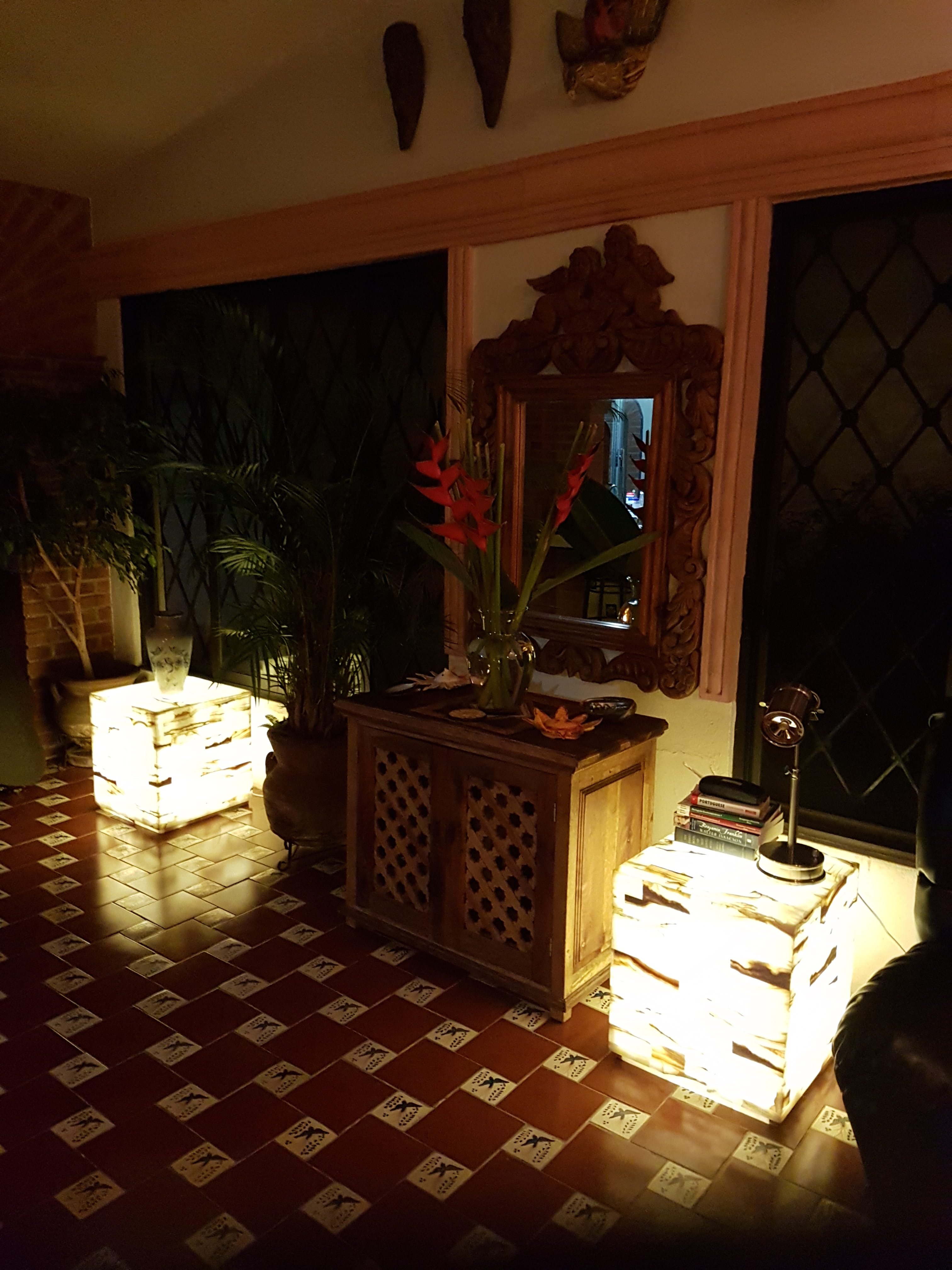 20181029_184713 Published 01/11/2018 at 3024 × 4032 in A WEEKEND IN PUEBLA, MEXICO Oct.26-29, 2018 ← Previous Next → These onix end tables add a warm glow to my living room when lit.