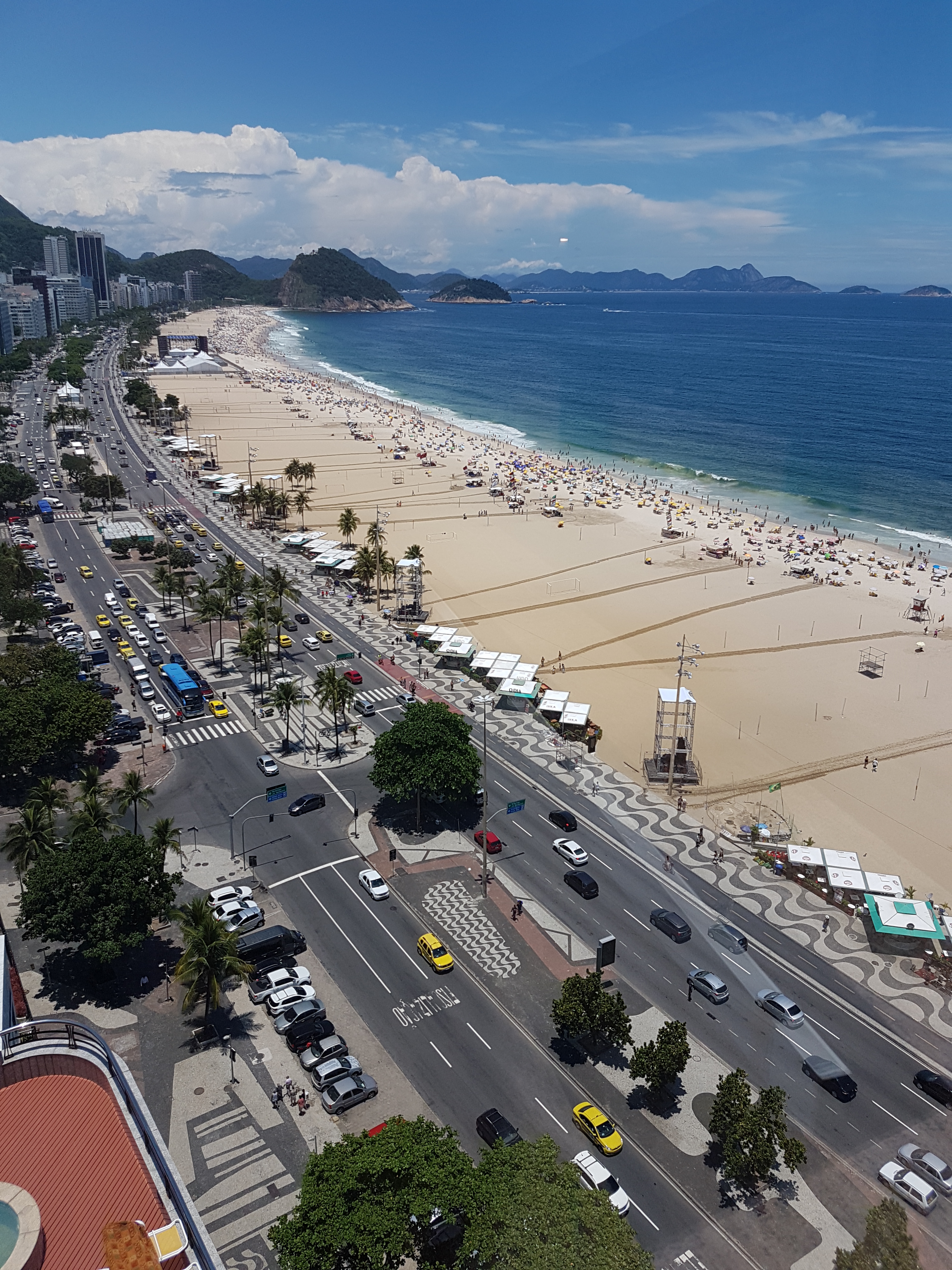 20181228_091913 Published 09/01/2019 at 3024 × 4032 in RINGING IN THE NEW YEAR AT THE LARGEST FIESTA IN THE WORLD: RIO DE JANEIRO & PARATY, BRAZIL ← Previous Next → Copacaban beach looking north from the hotel roof.