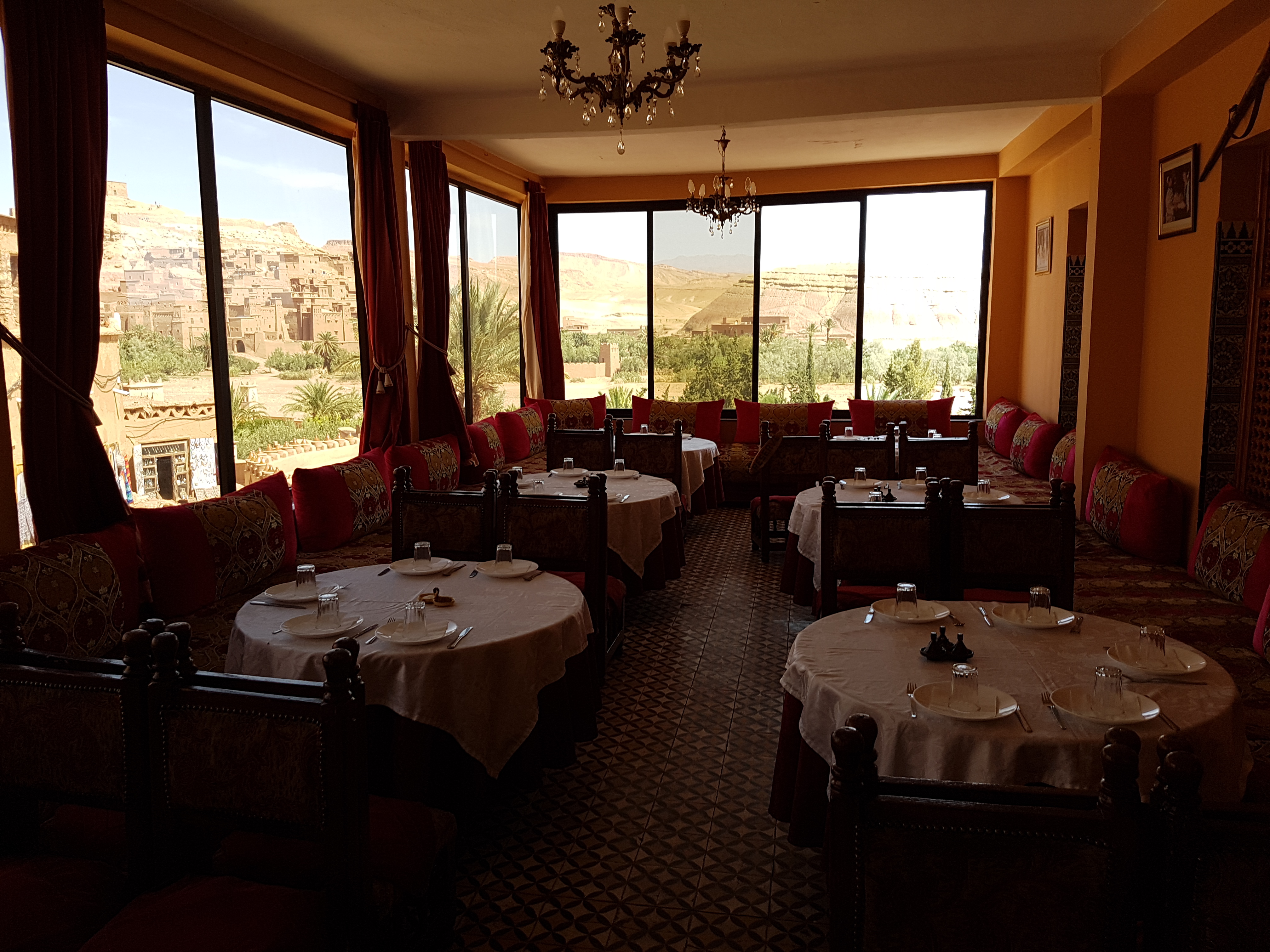 20190920_054716 Published 10/10/2019 at 4032 × 3024 in MOROCCO: FROM SEA TO SAHARA: A Tour with Alexander+Roberts September 15-27, 2019 ← Previous Next → Our lunch restaurant overlooked the ruins of the ksar.