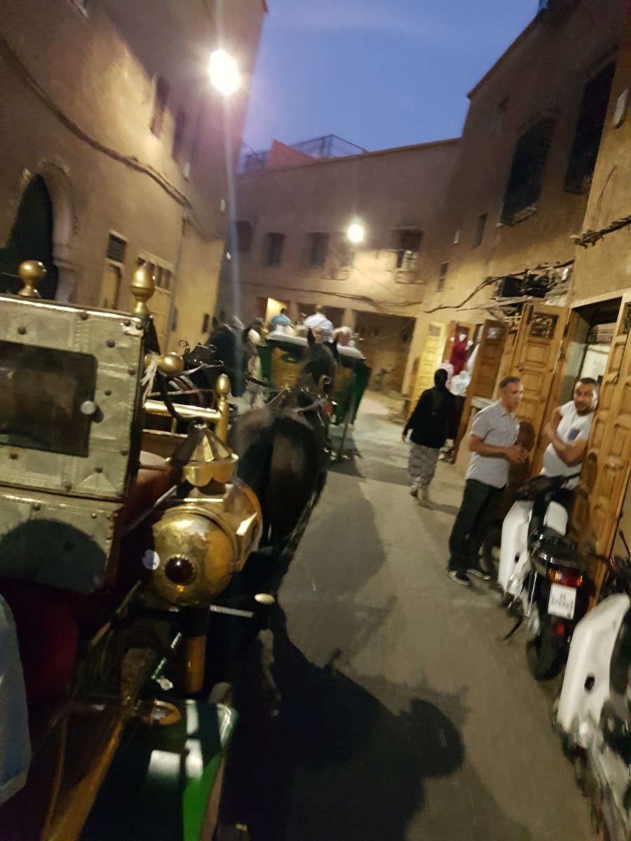 20190922_135008 Published 10/10/2019 at 3024 × 4032 in MOROCCO: FROM SEA TO SAHARA: A Tour with Alexander+Roberts September 15-27, 2019 ← Previous Next → Automobiles can’t traverse the narrow alleys of the medina, so carriages were the ideal way to get to restaurant Dar Zellij .