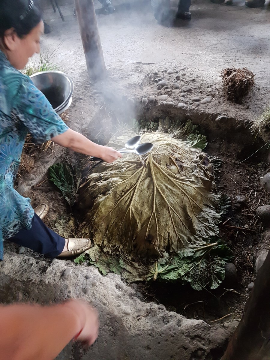 Next the rhubarb leaves are removed.