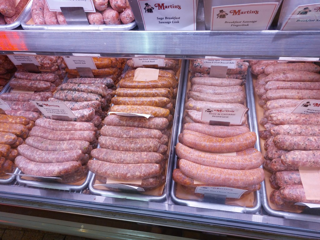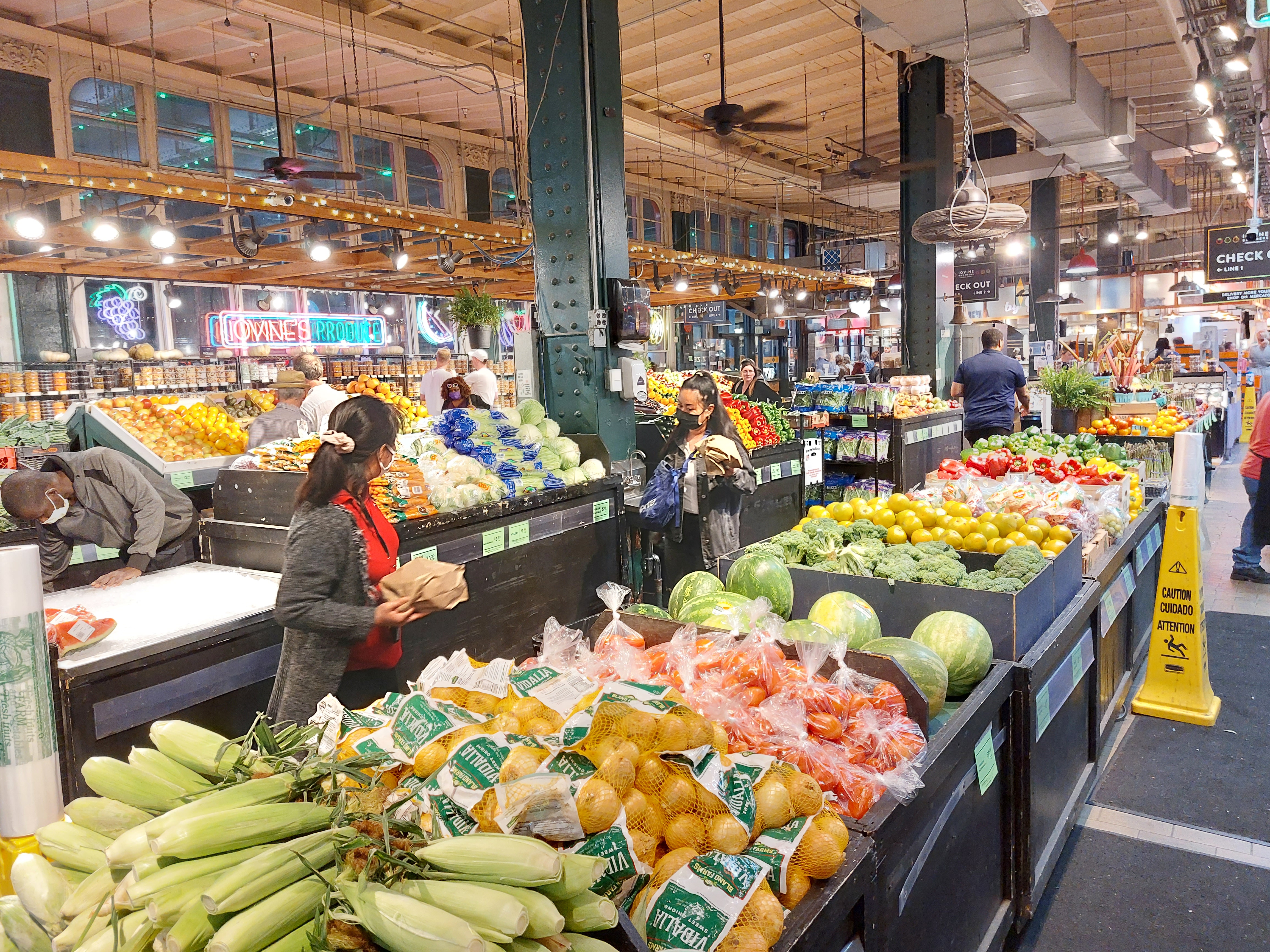 Among the most popular tourist sites in the city is the Reading Terminal Market, in a historic building on Arch Street since 1893. I remembered how much I enjoyed the Pike Place market in Seattle, and it was nearing lunch time, so I set off on a 15-minute walk from Independence Mall. With over 80 merchants displaying fresh produce, flowers, and prepared food, I was not surprised to find the aisles crowded with hundreds of people. The cheese and cold cut stalls and the fresh fish and seafood would tempt me to return often if I lived here. It was hard to decide what to eat, and the pastrami and Philadelphia cheese-steak sandwiches were especially tempting. The latter is so huge I knew I couldn’t finish it and had no place for leftovers, so I never got to taste the iconic sandwich. Instead, I chose one of my favorites, a lobster salad sandwich for 23 dollars. It was hard to find an unoccupied seat in the food court at lunch time but I found a place next to two Brits escaping from a convention. The convention center is across the street from the market. I was tempted to ingest more calories at the famous Bassett’s Ice Cream stand, but the line was too long.