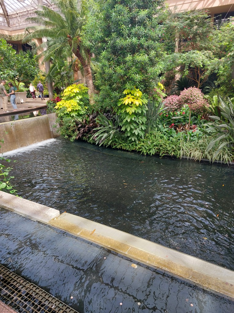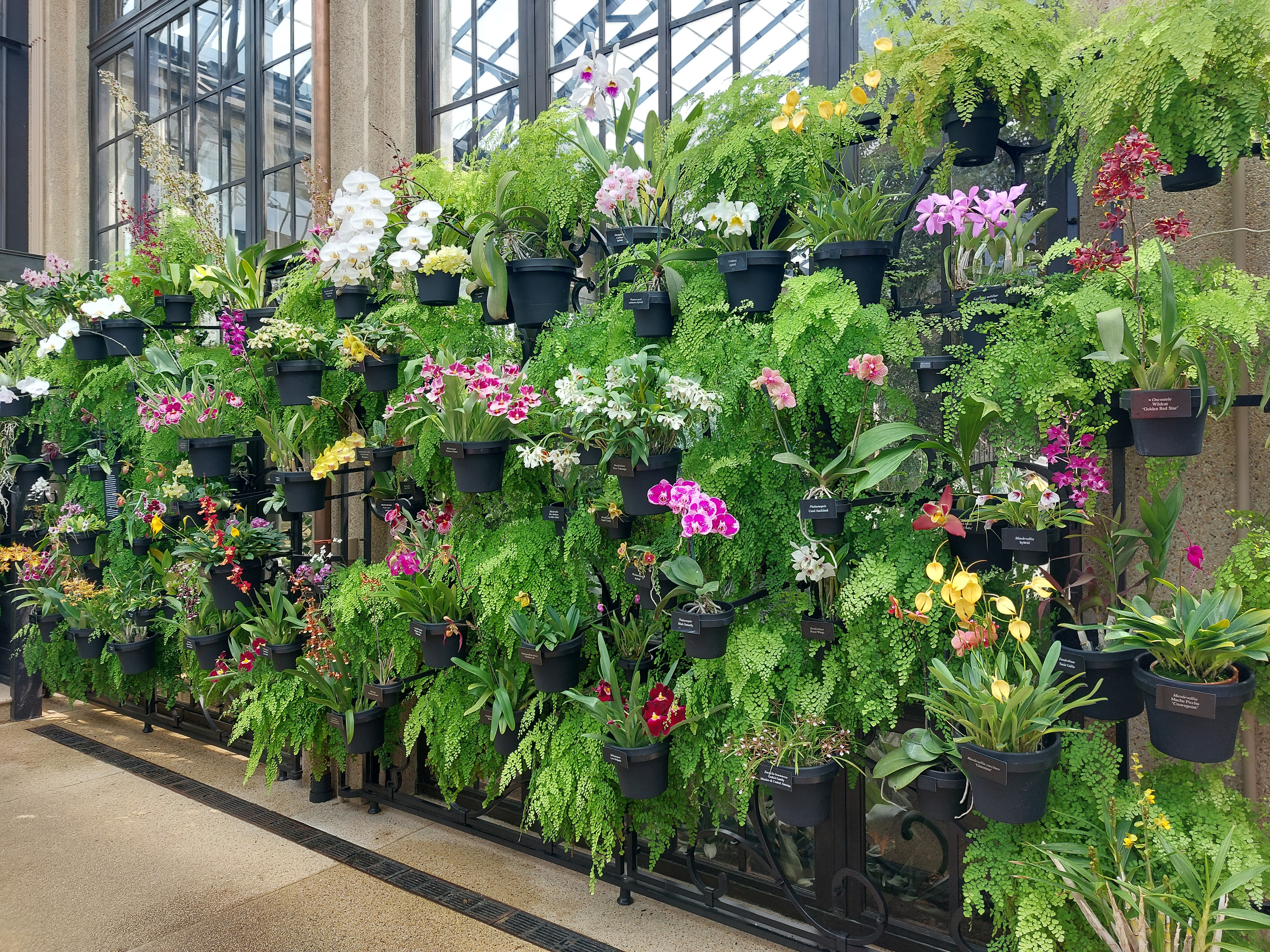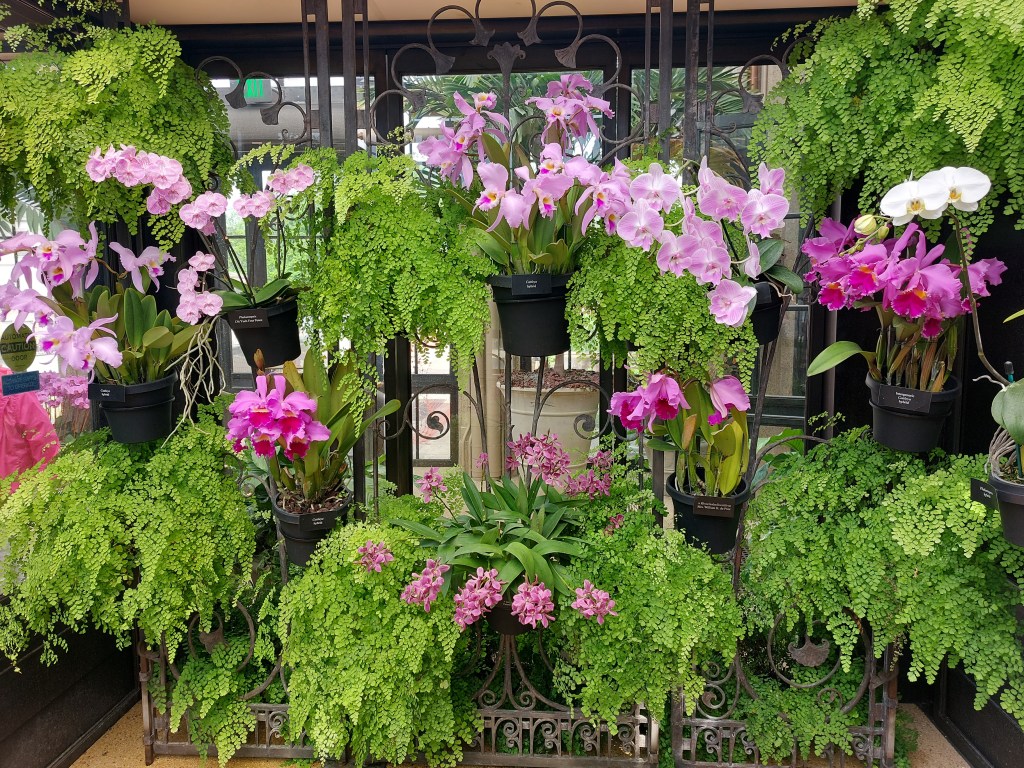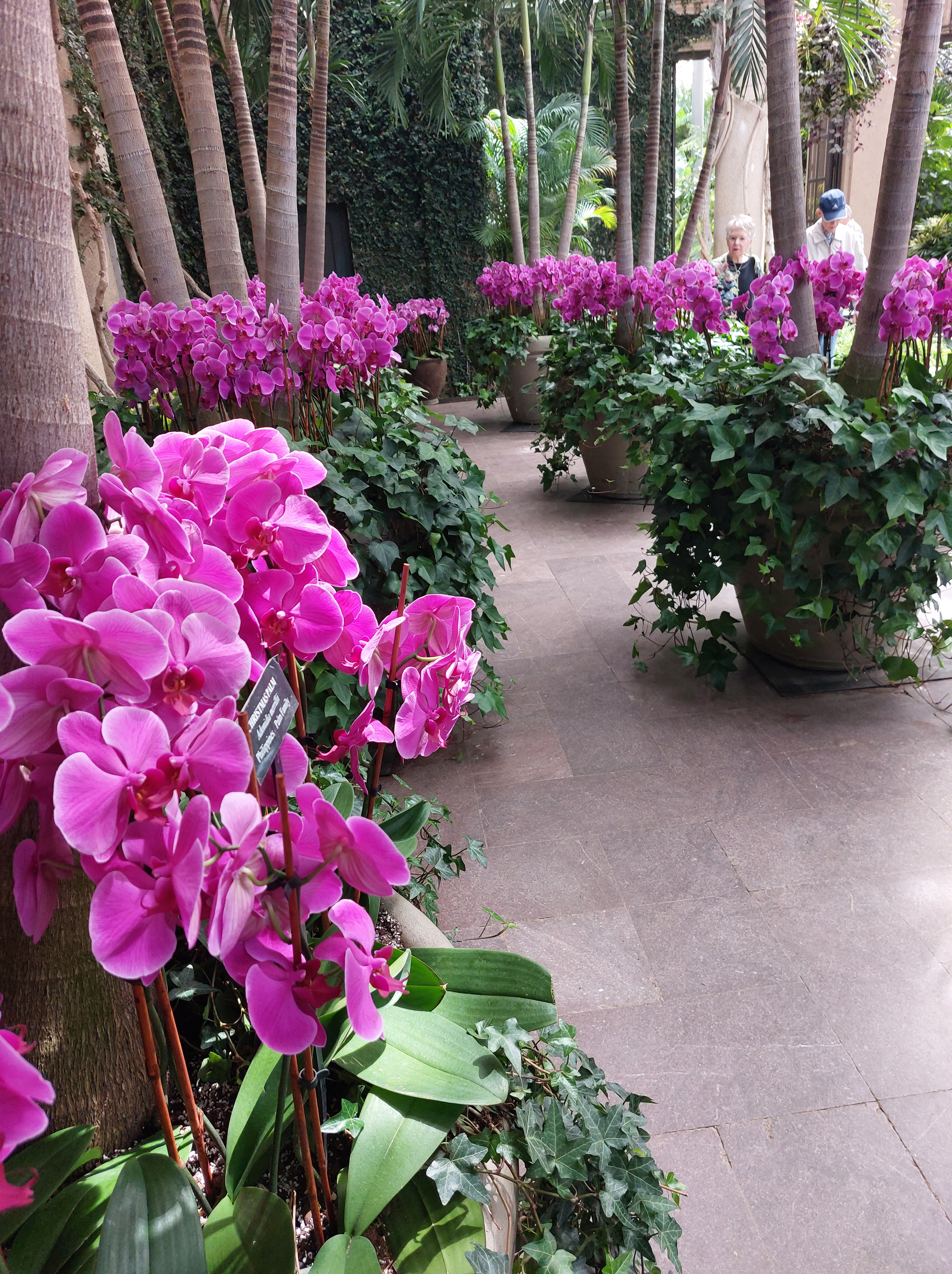 The conservatory is one of the largest I have visited in many gardens in many countries. It houses 4600 types of flowers and trees with rooms devoted to different species, like the large colorful orchid collection.