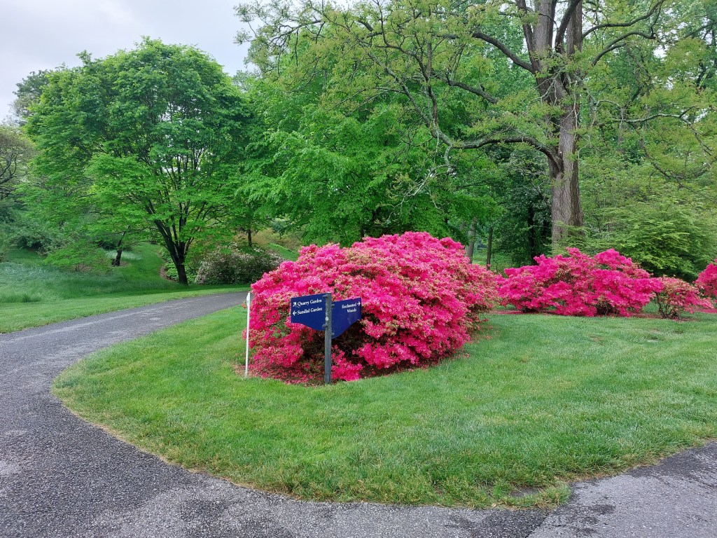 The driver, Muhammed, picked me up at the hotel at 9:30 am Wednesday May 18. He followed the verbal instructions on his dashboard device to take me to Kennett Square, PA, and we were at the Visitor Center of Longwood Gardens by 10:15. My timed ticket, purchased online, was for 11 am, but I was allowed in early. If one arrives without a timed ticket, admission depends on how many people are in the gardens. It was very crowded when I left at 1:30 p.m.