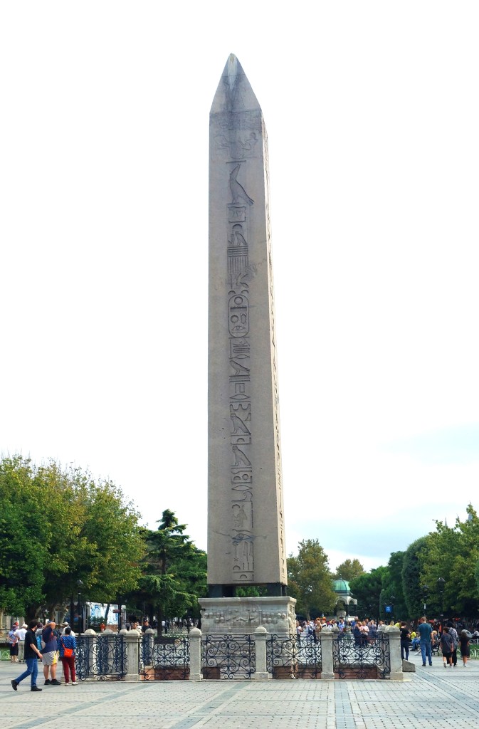 Istanbul is the largest city in Europe and the 15th largest in the world, with so many different districts that I can’t imagine anyone navigating it without a guide. We began with a taxi ride to the old city, starting at the ancient Hippodrome of Constantinople, now a spacious plaza called Sultanahmet Square, radiating to many of the most important historical sites. The scene of horse and chariot races and social events, it was first built when the city was still Byzantium. It was expanded after the Roman conquest by the Emperor Septimus Severus in 203 CE (Historians have replaced BC and AD with BCE, before the common era, and CE, common era). The Emperor Constantine refurbished the city in 324 CE, renaming it Nova Roma (New Rome), but it came to be called Constantinople. He greatly expanded the hippodrome providing seating for 100 thousand spectators. Only two columns remain from the ancient race course, including an obelisk brought from Egypt by the Emperor Theodosious and erected in 190 CE. Much of the marble seating was taken to build the nearby mosques and palace. Near the obelisk is the German fountain, a gift commemorating a visit to the city by Emperor Wilhelm II in 1898, disassembled, shipped, and reconstructed in the Hippodrome in 1900.