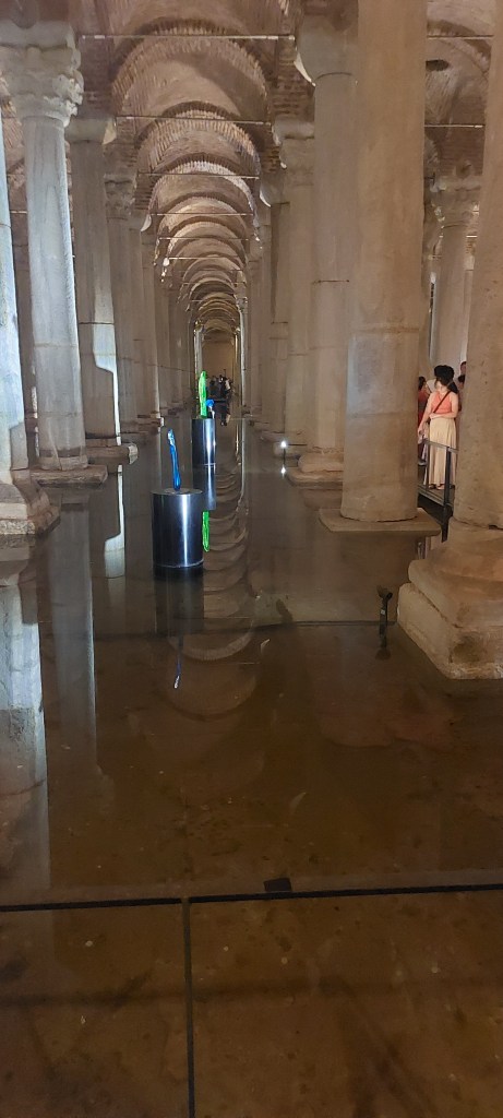 While the stunning Hagia Sophia is quite close to the palace, there was an enormous line from cruise ship excursions, and Tarik suggested we see the Cistern first, have lunch, then return to the mosque later.