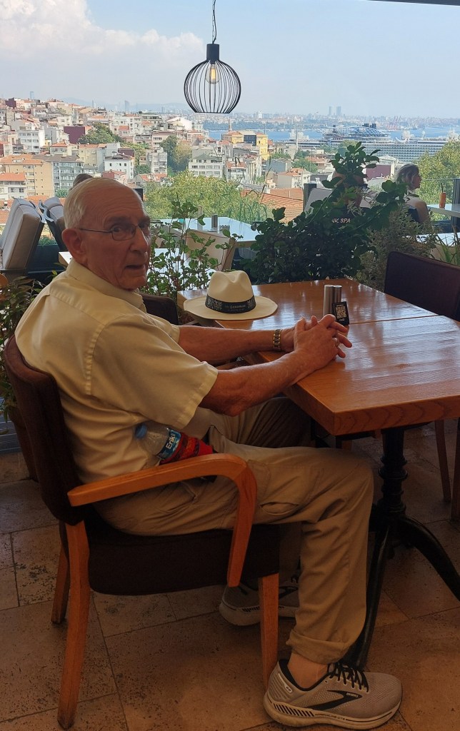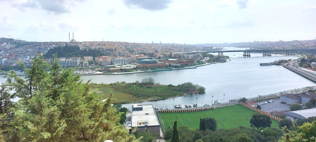 After walking about for over an hour, we took a cab to another high hill and an overlook named for Pierre Loti, a French expat writer (d. 1923) whose name is on the coffee house famous for its view of the Golden Horn. I chose lemonade over coffee and we rested up before taking the cable car down to shore where a tram runs through the area.