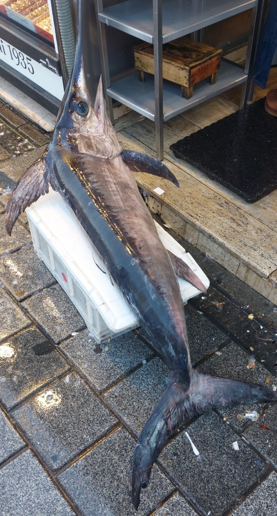 I walked through the park for about 300 meters to the north exit which emerges pleasantlyu on the Bosporus not far from a restaurant guide Tarik had recommended. It took a while to hail a taxi and the driver was not happy for such a short fare, but I offered 200 TL and he was happy to drop me at SUR BALIK, famous for seafood which I had yet to enjoy despite being on the Bosporus. In fact, Tarik had pointed out the restaurant during our Bosporus excursion. The staff seemed delighted to receive me, although they were busy putting another catch of the day in the refrigerated display case. The second-floor dining room was almost empty at 1 pm except for about a dozen Japanese tourists and their guide. Later a very large Japanese group came in and went to a third-floor dining room. I took this as validation that I had picked a good spot for lunch. The delightful view of the Bosporus added to the value for price. The seafood salad was mostly squid and octopus with a few token shrimp. The main course was a huge grilled seabass with potato and vegetable, leaving no room for dessert. This was my only fine dining experience since I ate mostly at the hotel or walked to the many restaurants at nearby Taksim Square.