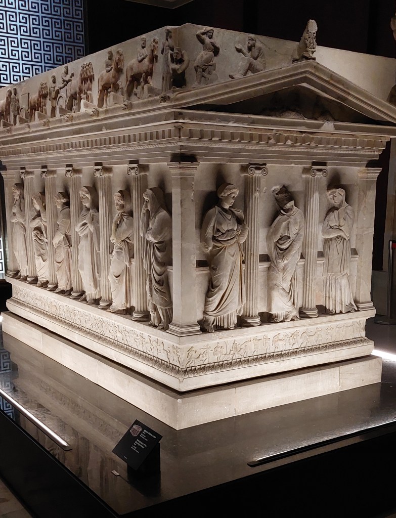 I had saved two days for museums and gardens on my own. From the descriptions online, I knew which one I would like best. The Archaeology museums are a group of three but one was closed for renovation and the other did not interest me, knowing I would be saturated after the main building. The museum is near the Topkapi Palace, but traffic in the area was so heavy the cab driver dropped me off about 500 yards away telling me it was close by. I had to ask directions twice before finding the museum, rather hidden at the end of a cobbled street. The 550 TL entrance could be paid only in lire. The museum more than lived up to my expectations and I could have spent more than two hours there had I been interested in minor ceramics, glassware, and coins. Below are photos of just a fraction of the awesome monuments and sculptures.