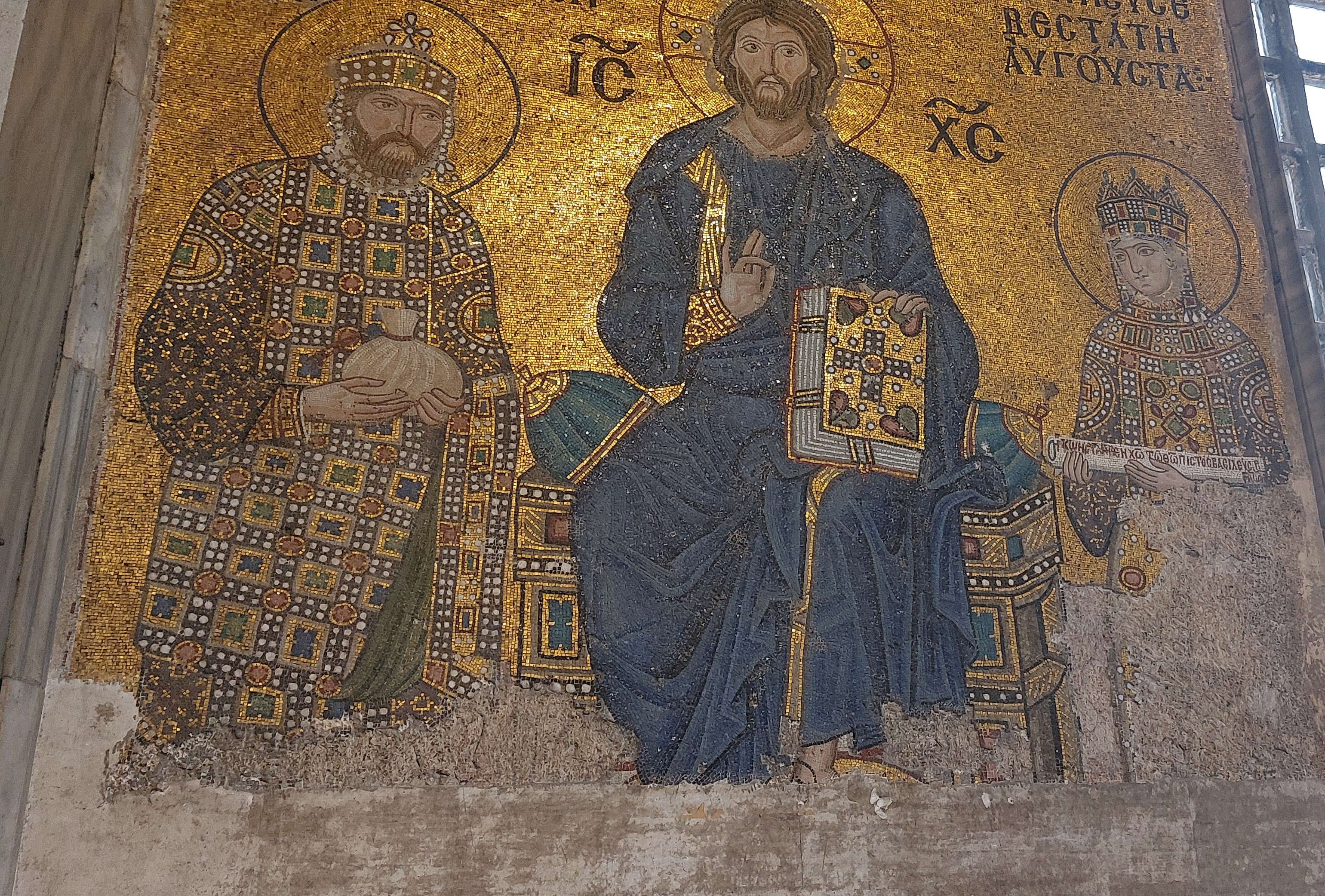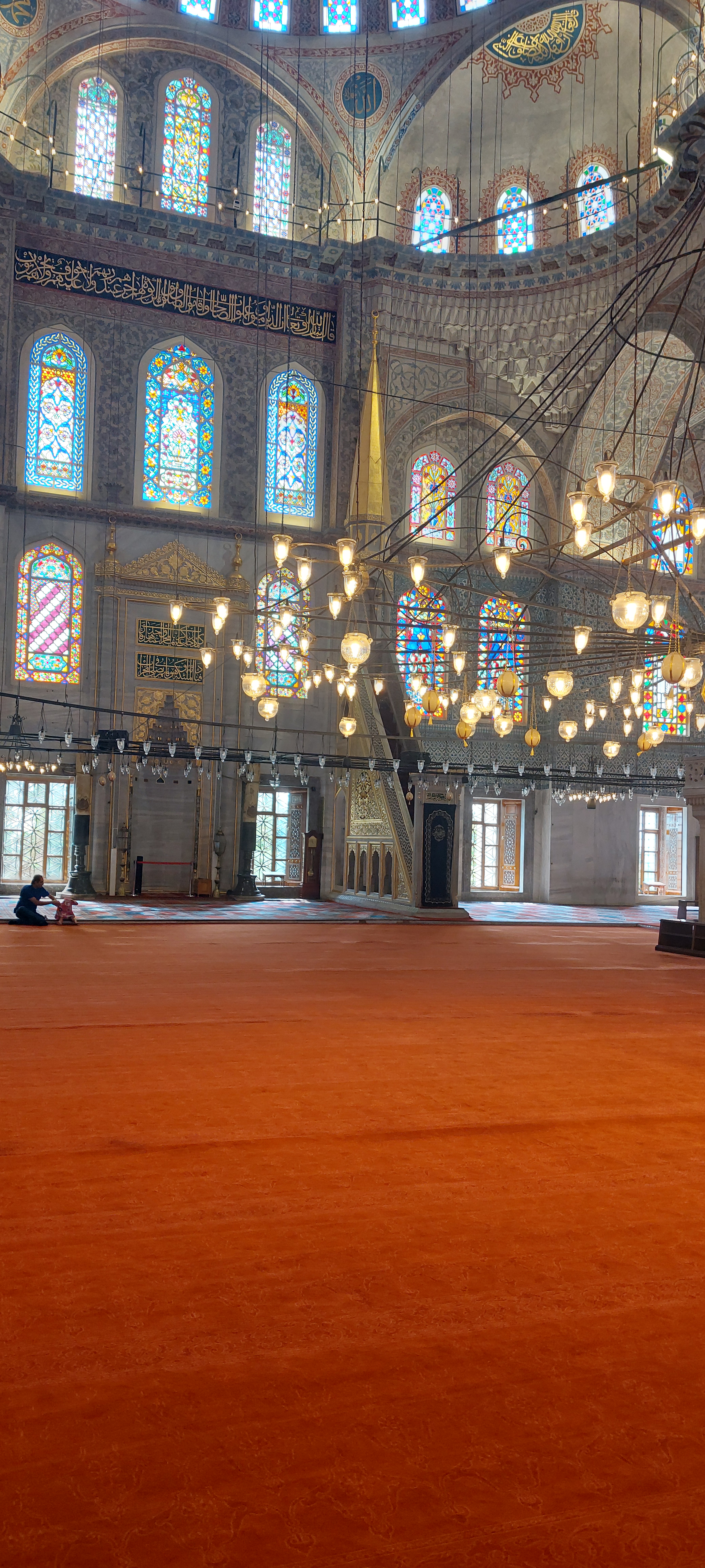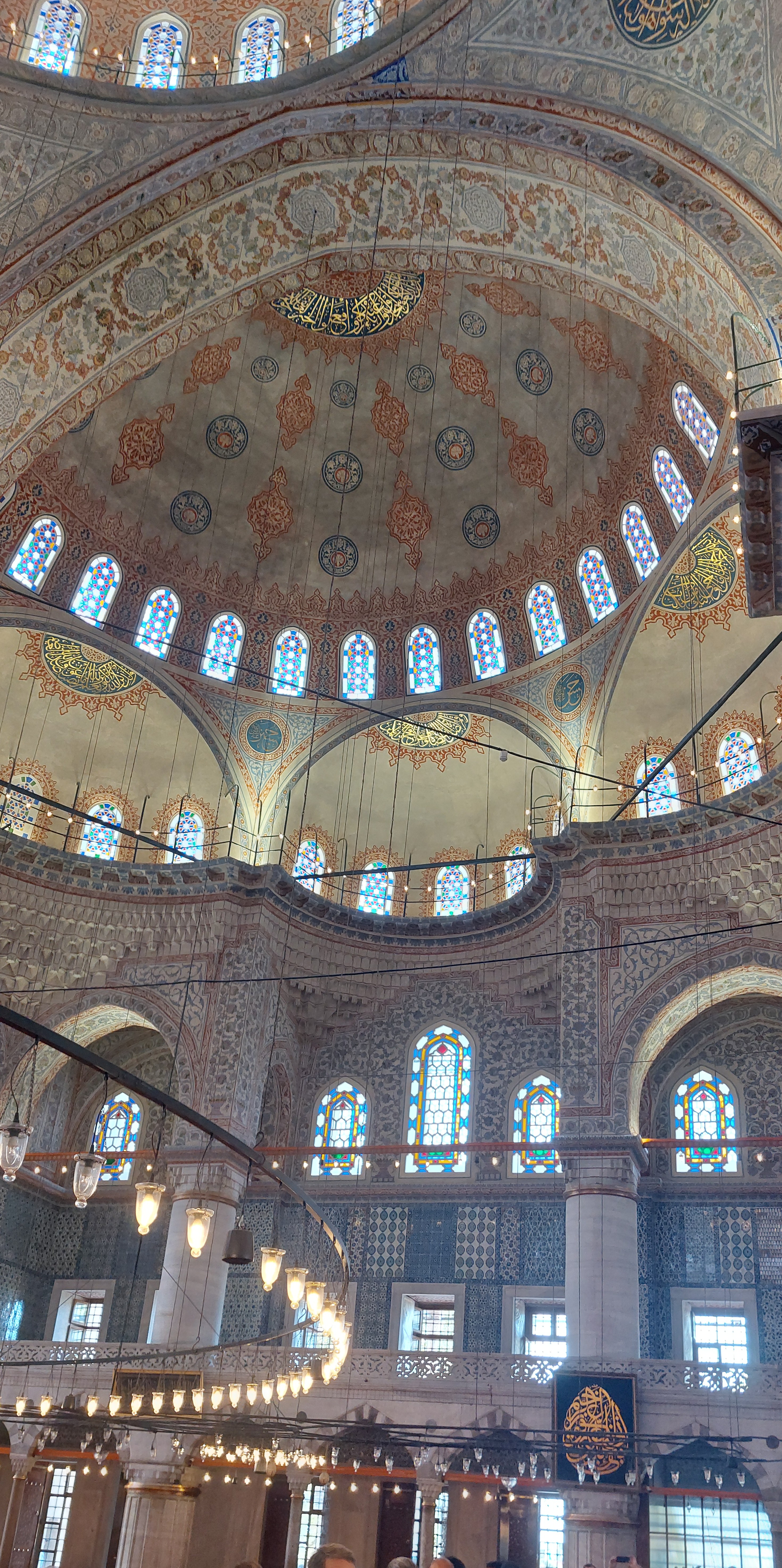 After lunch, as Tarik had predicted, the cruise ship passengers had departed and there was no line for us to enter the Grand Mosque Hagia Sophia (Holy Wisdom). First a Catholic church, then it became a Greek Orthodox church from 360 CE to 1453 when Constantinople fell to the Ottomans. For a thousand years it was the largest cathedral in the world. In 1453, Mehmed the Conqueror converted it to a mosque until 1931 when it was closed by a secular government and declared a museum in 1935. In 2020 a more Islamic inclined state caused a stir when it reclassified the building as a mosque; so once again it is a prayer center and the most visited site in the city.
