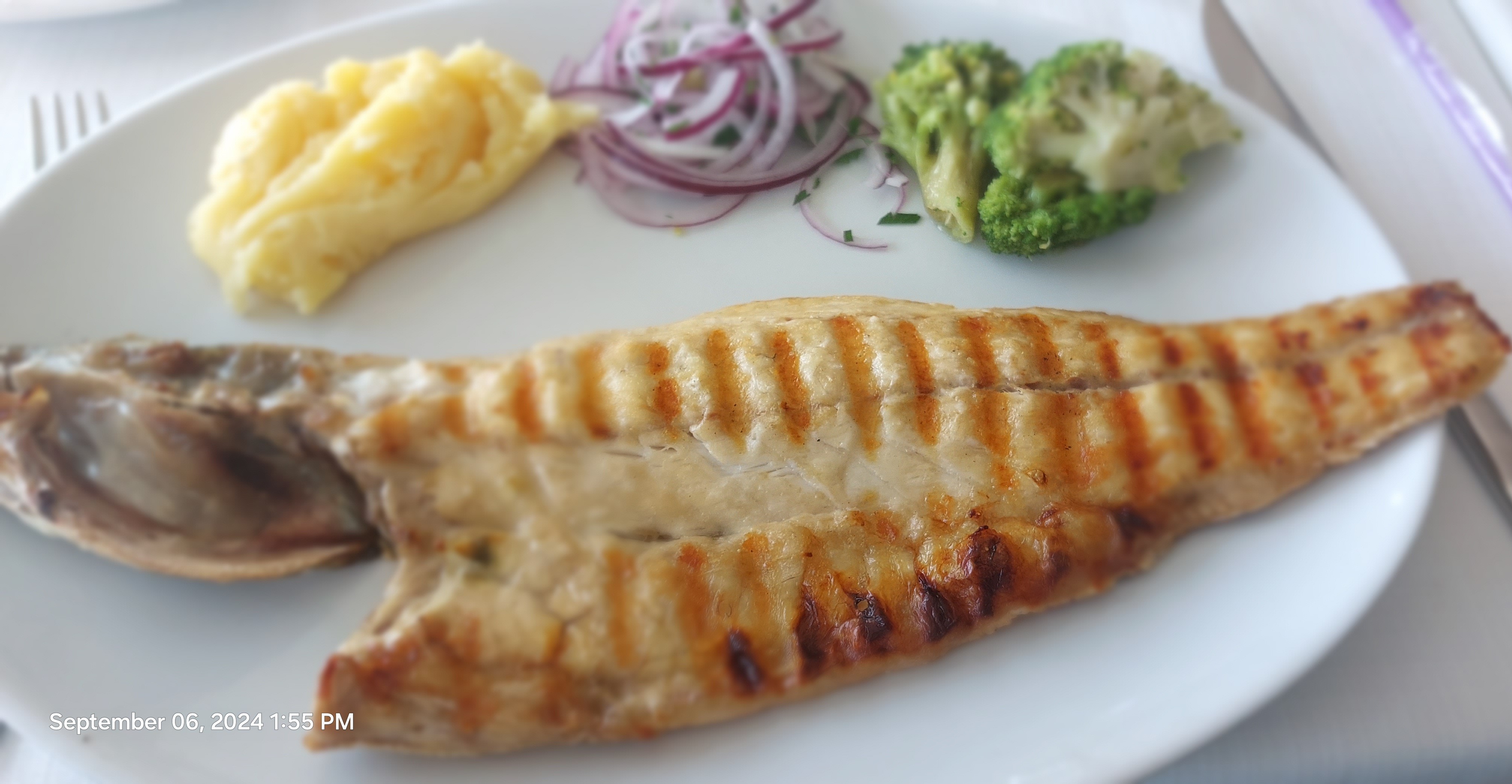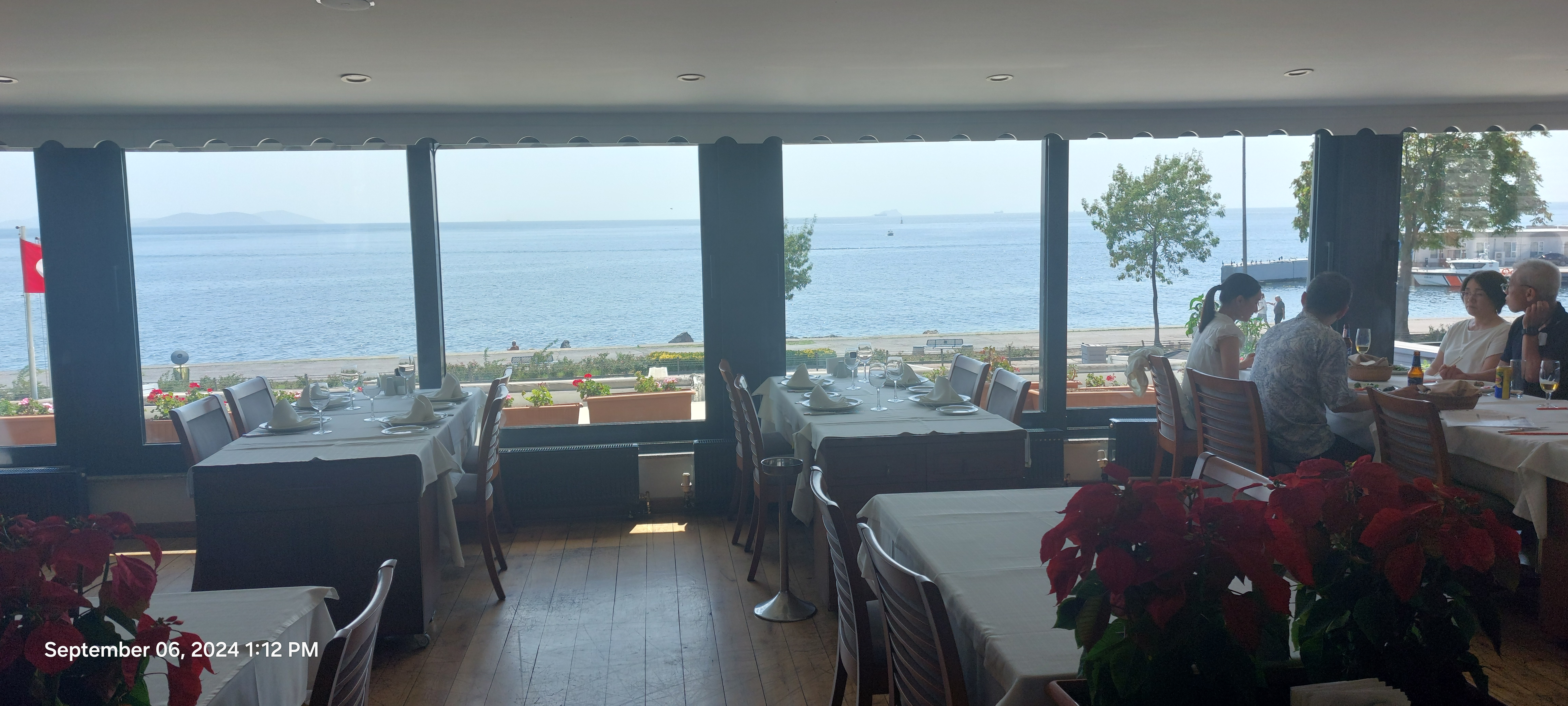 I walked through the park for about 300 meters to the north exit which emerges pleasantlyu on the Bosporus not far from a restaurant guide Tarik had recommended. It took a while to hail a taxi and the driver was not happy for such a short fare, but I offered 200 TL and he was happy to drop me at SUR BALIK, famous for seafood which I had yet to enjoy despite being on the Bosporus. In fact, Tarik had pointed out the restaurant during our Bosporus excursion. The staff seemed delighted to receive me, although they were busy putting another catch of the day in the refrigerated display case. The second-floor dining room was almost empty at 1 pm except for about a dozen Japanese tourists and their guide. Later a very large Japanese group came in and went to a third-floor dining room. I took this as validation that I had picked a good spot for lunch. The delightful view of the Bosporus added to the value for price. The seafood salad was mostly squid and octopus with a few token shrimp. The main course was a huge grilled seabass with potato and vegetable, leaving no room for dessert. This was my only fine dining experience since I ate mostly at the hotel or walked to the many restaurants at nearby Taksim Square.