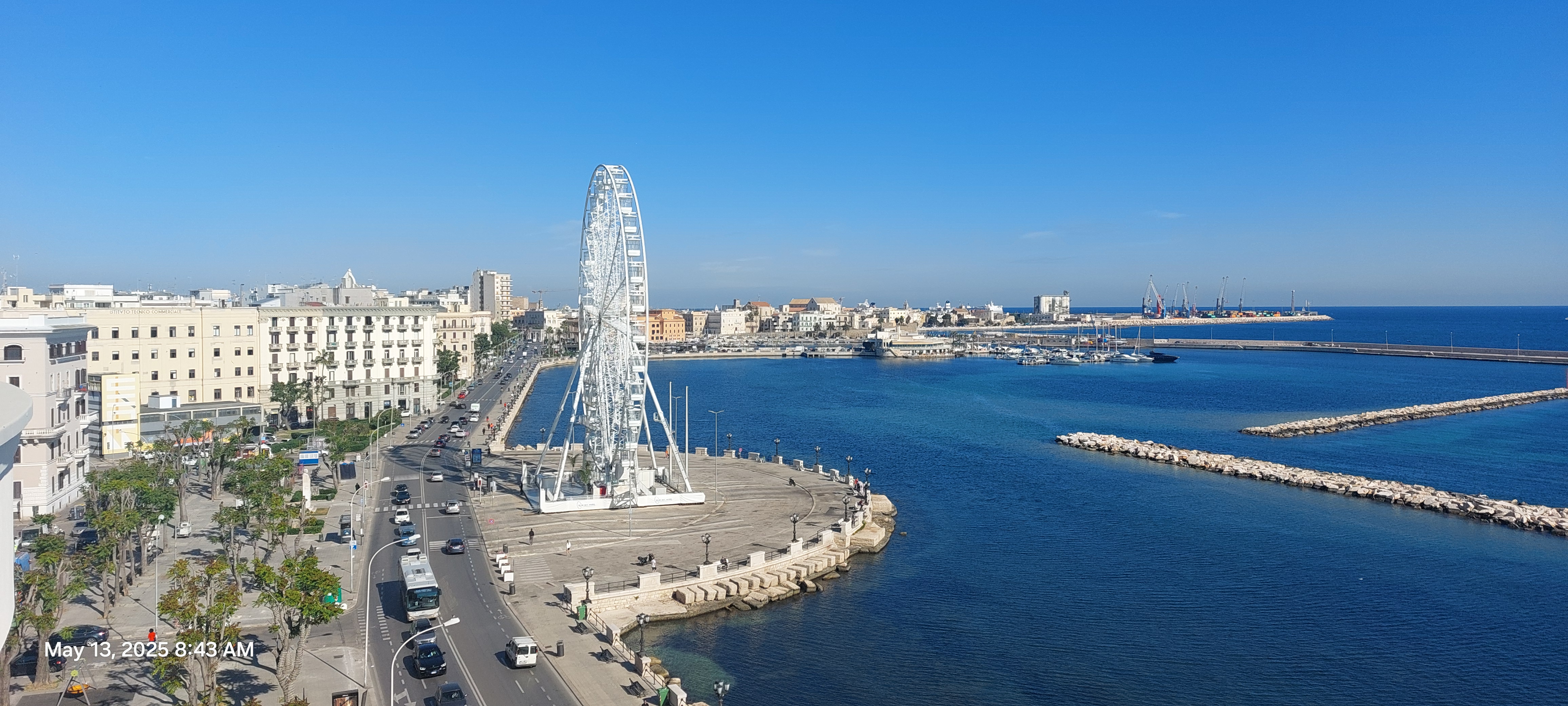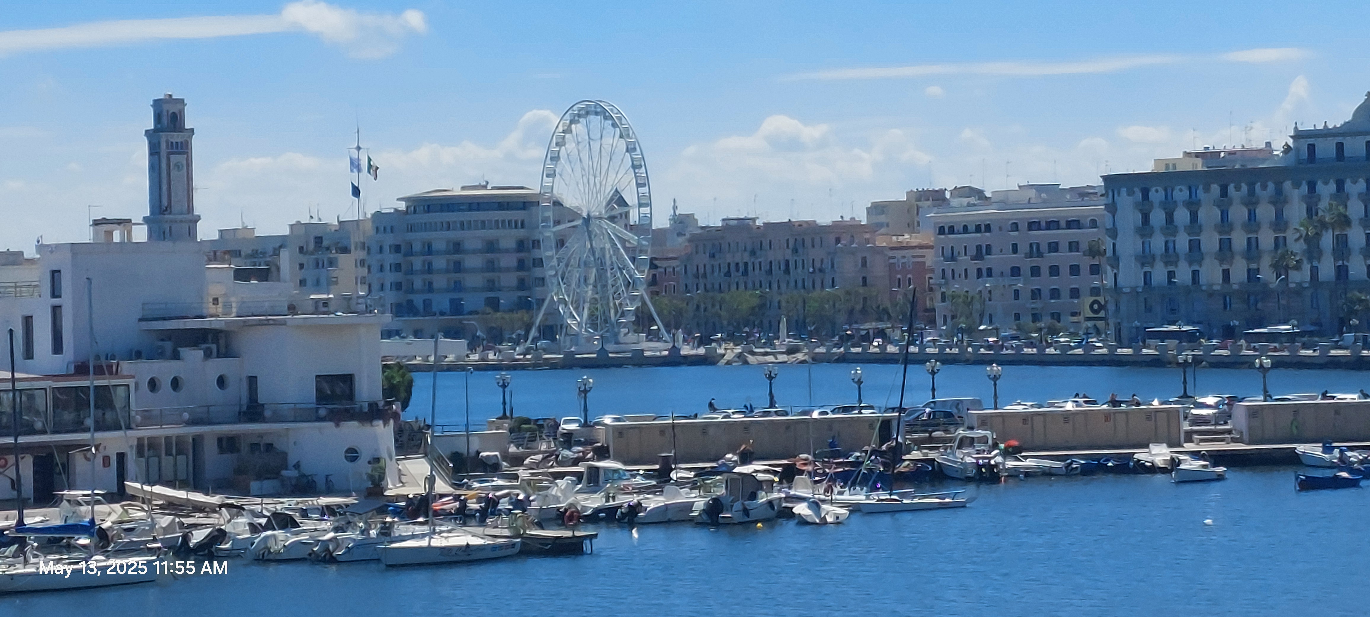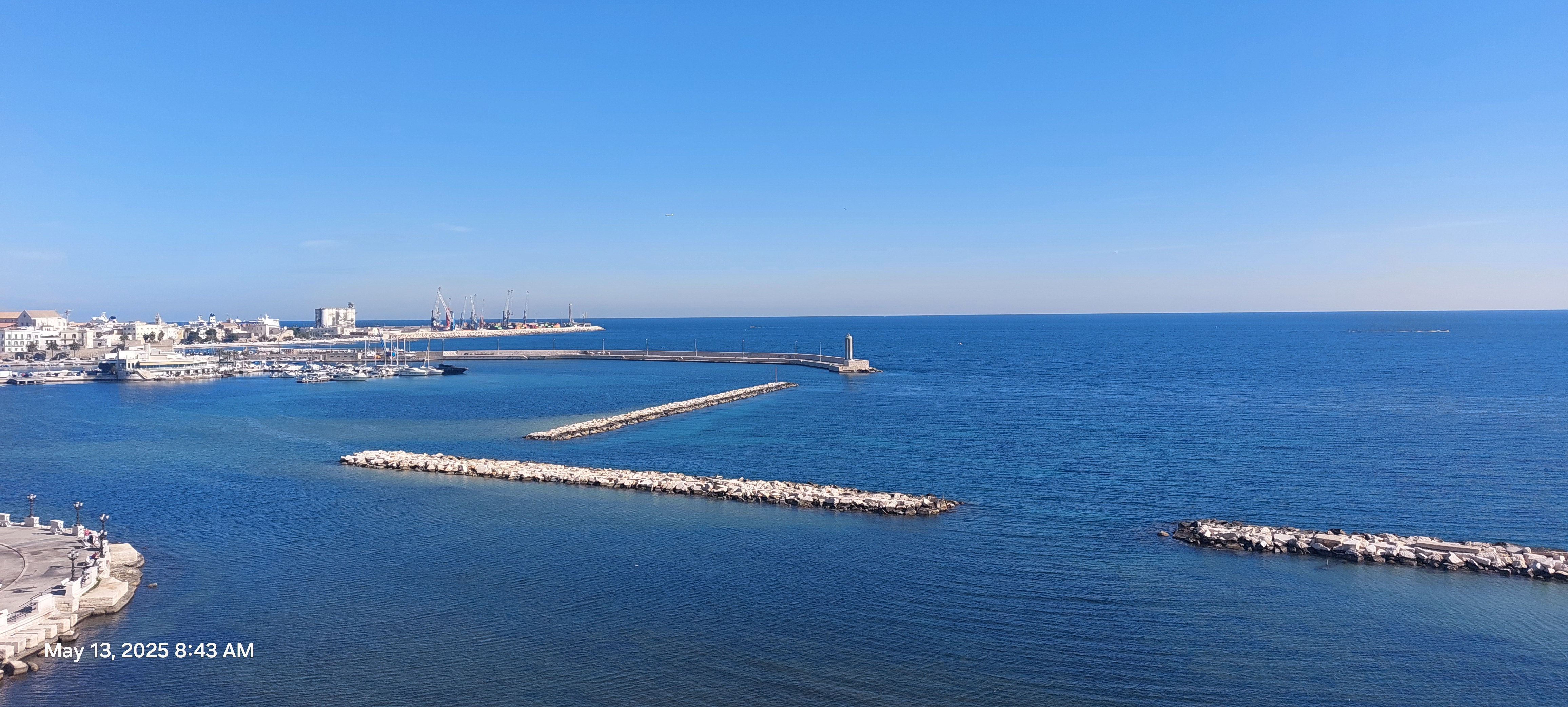 Aeromexico’s business-class service to Rome from Mexico City’s terminal 2 is excellent. At my age, flying coach across the pond is unbearable in a seat with insufficient recline, and someone sleeping on top of you. I was worried about a tight connection time with only two hours between arrival in Rome and departure for Bari, so I was relieved to discover that Aeromexico has a code share with Italian Airlines, ITA, and my luggage was checked all the way from Mexico City to Bari. As it turned out, the ITA -connection was delayed one hour. One slight drawback: I can barely tolerate the 8-hour flight from JFK to Rome; from Mexico City it’s an interminable 12-hour flight mitigated by excellent food and beverage service and a comfortable lie-flat seat. A train ride, then a long walk to the domestic terminal, then a long wait until boarding was a bit tedious with insufficient sleep and jet lag. One has to sit in a huge waiting area until ITA announces the boarding gates to its scores of domestic takeoffs and landings. Then you rush to the gate and stand up for half an hour in the boarding line. Luckily, business-class boarding was a bit more efficient since coach-class was treated like a cattle drive. It’s only a one-hour flight Rome/Bari so the mediocre beverage service and a bag of mystery chips was no problem. Luggage did not take too long to arrive and taxis were easy to find outdoors, 28 euros for the 20-minute ride to the hotel on Bari’s beautiful lungomare, a spectacular seaside promenade.
