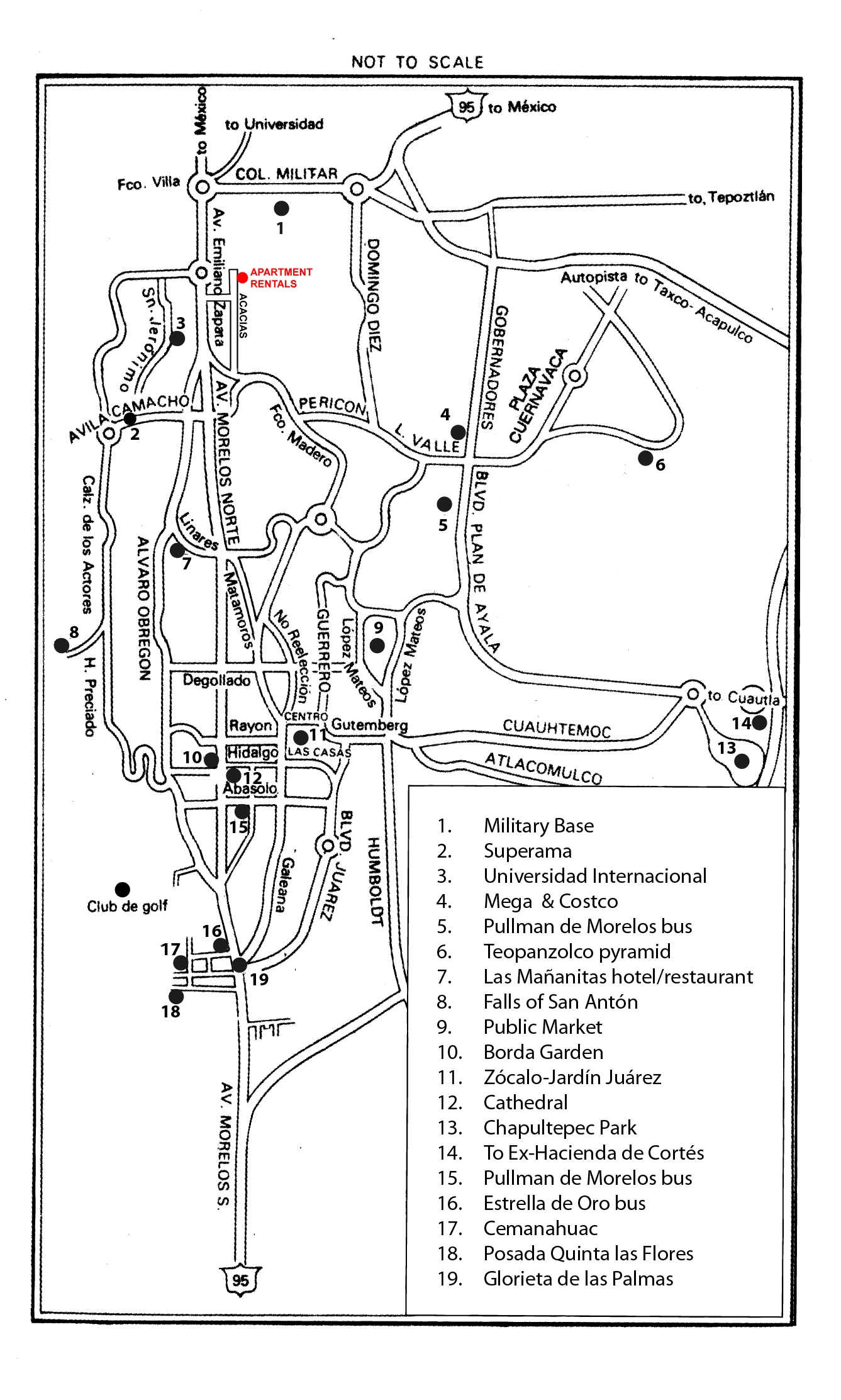 LOCATION MAP OF APARTMENT RENTALS IN CUERNAVACA, MORELOS, MEXICO See The Map
